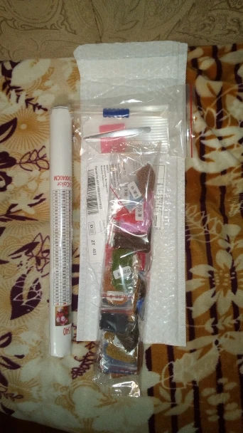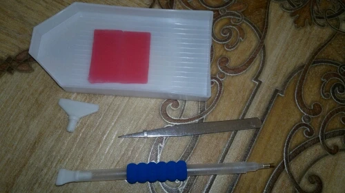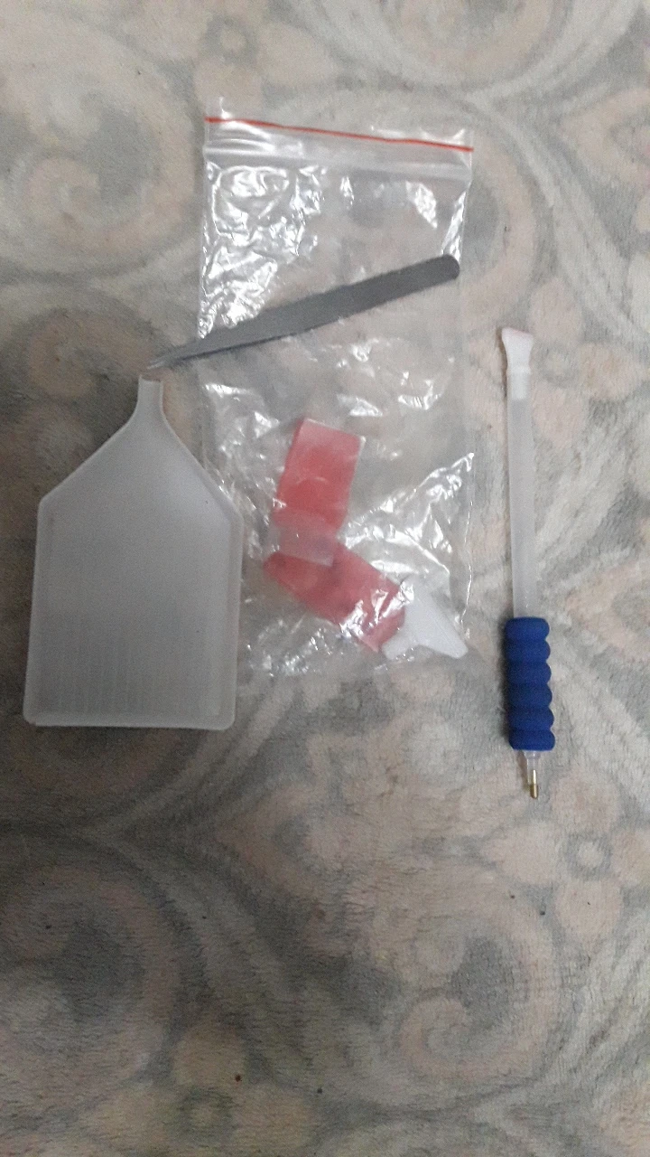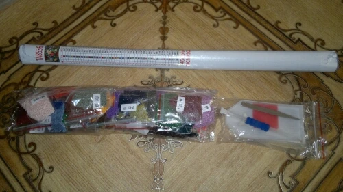 Посылка шла очень долго, больше двух месяцев. Брала на подарок, но из-за опоздания теперь оставлю себе. Списывалась с продавцом по поводу задержки, продавец отвечает сразу, успокоил что посылка в пути, обязательно придет. Упаковано в воздушную подушку, ничего не помялось. Клеевая основа-двухсторонний скотч, клеится хорошо. В наборе 45 цветов страз, все стразы распакованы по зип-пакетам, за что большое спасибо!!! В наборе большой лоток, пинцет, ручка на 1, 4 и отдельной насадкой на 11 страз, на ручке удобный поролоновый держатель, рука не скользит и не устает, две большие мастики. Из всех магазинов, где заказывала алмазку, это пока единственный, где прям все идеально и продумано для покупателя. Пропечатка рисунка отличная, рисунок даже без выкладки смотрится очень красиво. Естественно, чем больше размер, тем больше палитра страз и лучше детализация, т.ч. советую лучше заплатить больше, но получить шикарную картину. Товаром очень довольна! Спасибо! Рекомендую! Выложу, дополню с фото.