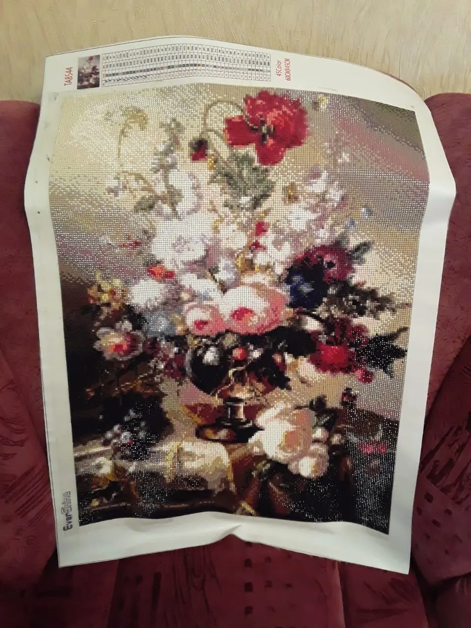 Получила в течение месяца, очень нравится пока сделала одну треть, цвета очень яркие. Как закончу дополню отзыв. Пока в восторге, рекомендую