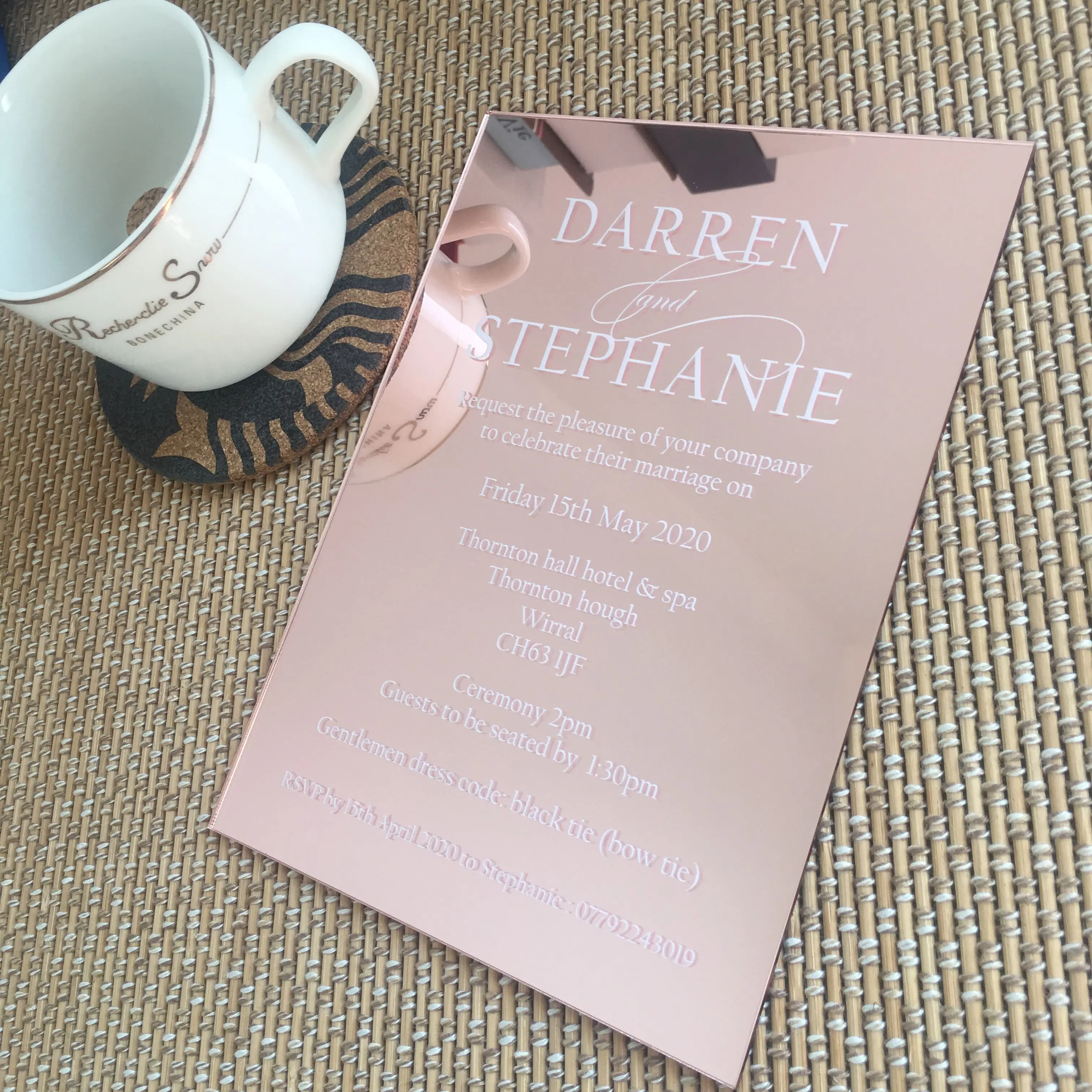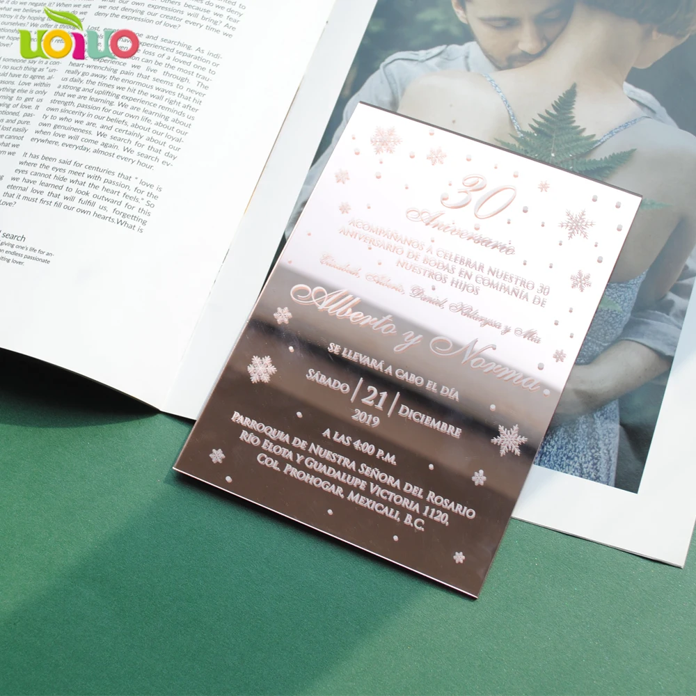 10 шт., хит продаж, элегантные акриловые свадебные пригласительные открытки из розового золота с красочным принтом