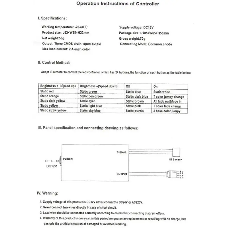 Характеристика:-24-кнопочный ИК-пульт дистанционного управления для RGB светодиодный SMD светодиодные полосы света.-Принять ИК-пульт дистанционного управления светодиодный свет полосы.-Он может контролировать светодиодный светильник, цвет, яркость и режимы вспышки. Низкое энергопотребление и длительный срок службы.Характеристики:Рабочая температура: -20 ~ 60 °CРежим подключения: общий анодВходное напряжение: 12 В постоянного токаВыходное напряжение: 12 В постоянного токаВыход: Три CMOS Слив-открытый выходМаксимальный ток нагрузки: 2 А каждого цветаРазмер пульта дистанционного управления: 8.5x5x0.5 см/3.35x1.97x0.19 дюймовВес: 63,8 гПосылка: 9.3x5.2x 4 см/3.66x2.05x1.57inПримечания:Возможны отклонения в 1-3 мм вследствие измерений вручную.Из-за различных дисплеев и различного светильник, изображение может не показать фактический цвет товара. Спасибо за понимание.