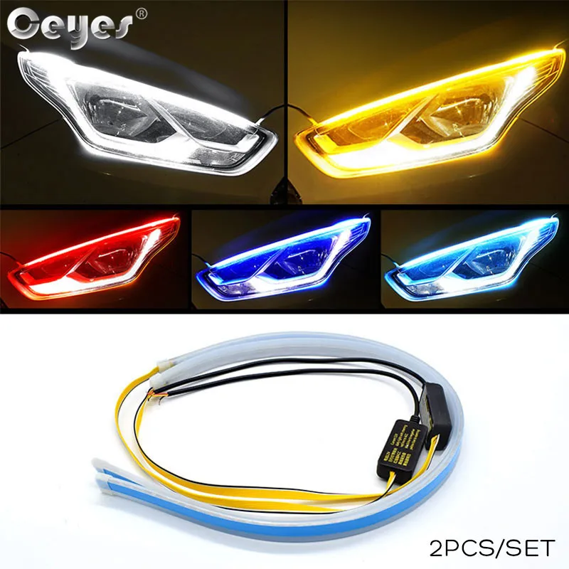 Ceyes автомобили DRL светодиодный дневные ходовые огни белый сигнал поворота желтая направляющая полоса для фар в сборе Прямая поставка