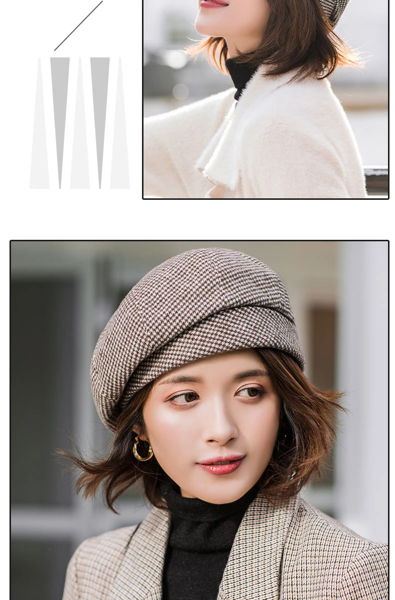 Женский шерстяной берет, элегантная хлопковая шапка в клетку, винтажная восьмиугольная Повседневная Осенняя шапка для девушек