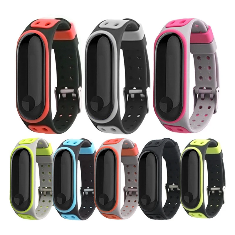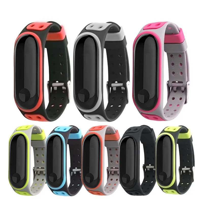 Силиконовый двухцветный двубортный спортивный ремешок на запястье для Xiaomi Mi Band 4 3 ремешок браслет умный аксессуар Miband 4 3 ремешок
