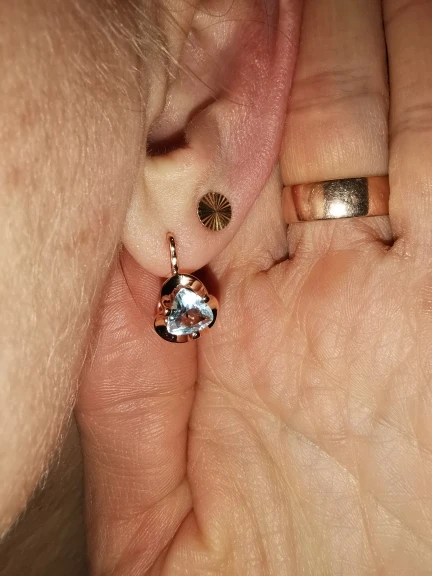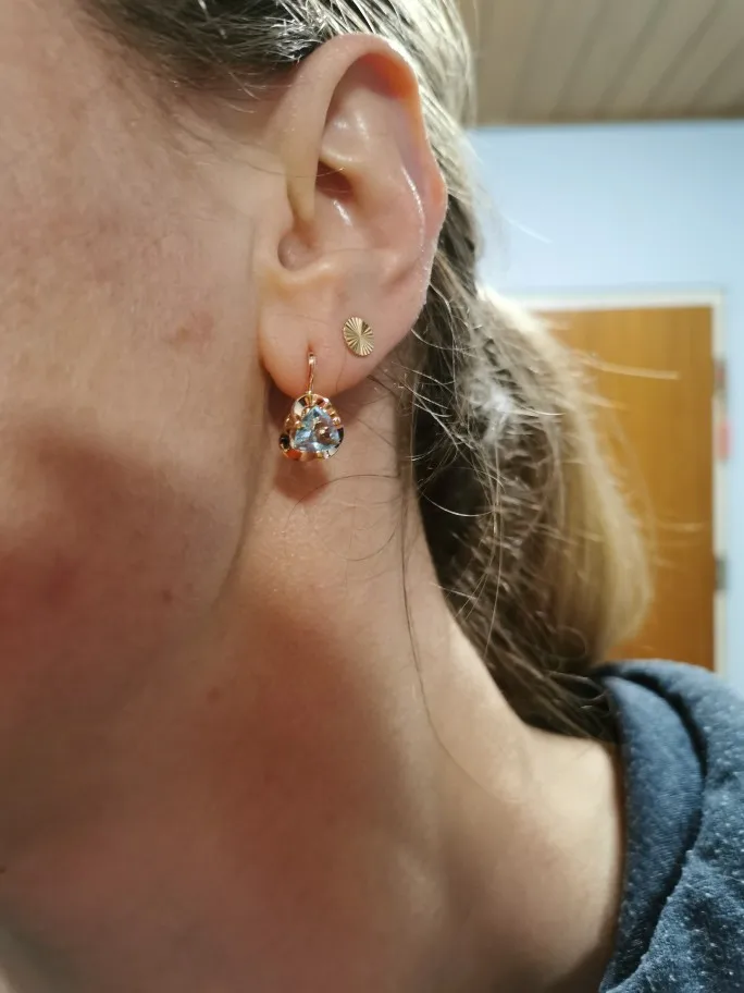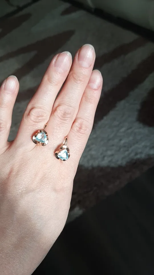 Зеленые все хорошо, а голубые обе серьги бракованные. Швенги кривые и в зазубринах.