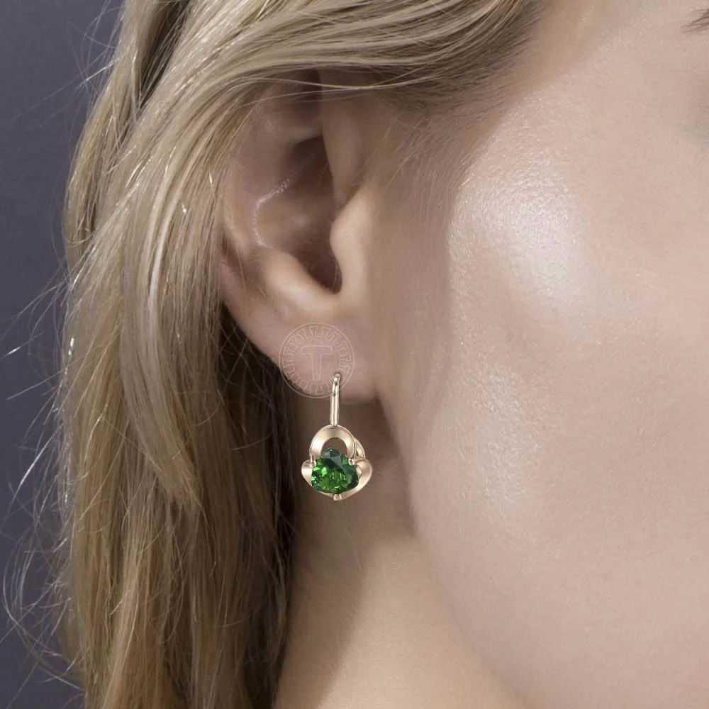 Серьги женские из розового золота 585 пробы, вечерние натуральным Цирконом