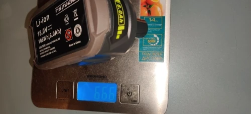 Аккумулятор абсолютно левый, сравните сами вес родного 4 Ah - 726 грамм, и этой поделки якобы 6 Ah - 666 грамм. Тут некоторые не сильно умные покупатели связывают его ёмкость со временем зарядки. Зарядка вообще ни при чем, он вообще криво заряжается и конфликтует с оригинальным зарядным устройством. Мигают по очереди красный и зелёный огоньки, но кое-как заряжается. Он может заряжаться сутки, это ничего не значит. В реальности моя газонокосилка с оригинальным 4 Ah работает 20 минут, с этим около 13 минут. Думаю, его реальная ёмкость 2.5-3 Ah, и в любой момент станет ещё меньше. Начитался хвалебных отзывов всяких дурачков и в итоге наши китайские "друзья" поимели меня в очередной раз. Не стесняюсь в этом признаться, но вы будьте мудрее. Заказ был с курьерской доставкой, в итоге пришло в "Пятёрочку". И тут китайские жулики обманули.