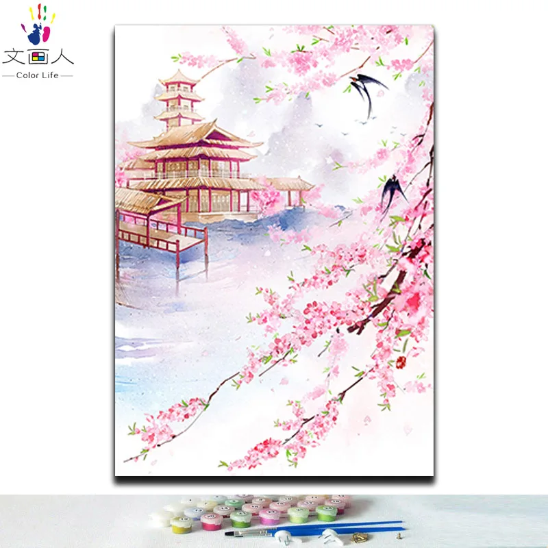 DIY картинки для раскраски по номерам с цветами, пейзаж в китайском...