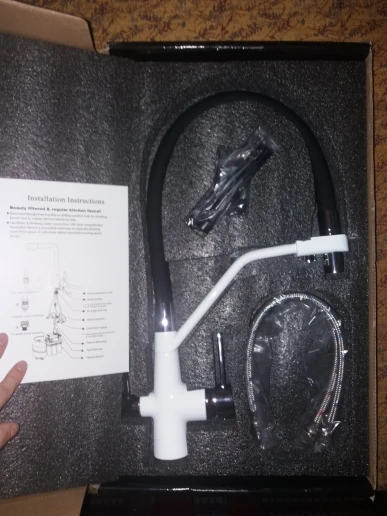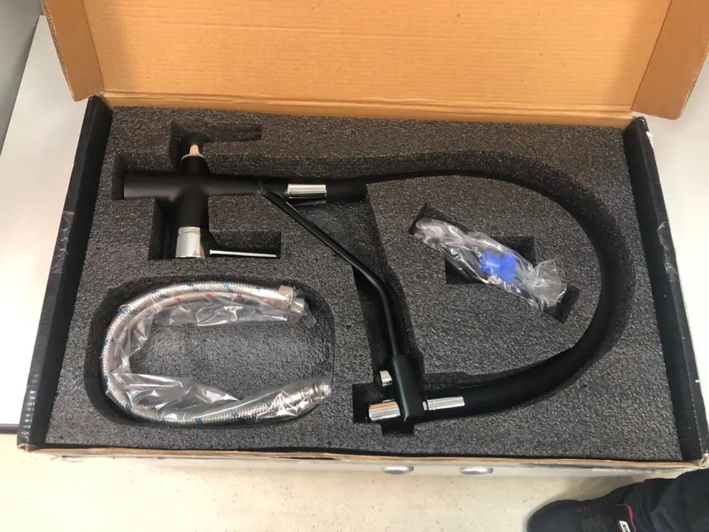 Коробка прибыла мокрая и в плохом состоянии... Но кран был в идеальном состоянии... Мне пришлось поменять одну из рукавов, потому что она была немного короткой, и она не дошла до меня... Обычно хороший продукт и хорошая отделка... Продавец и рекомендуемый продукт