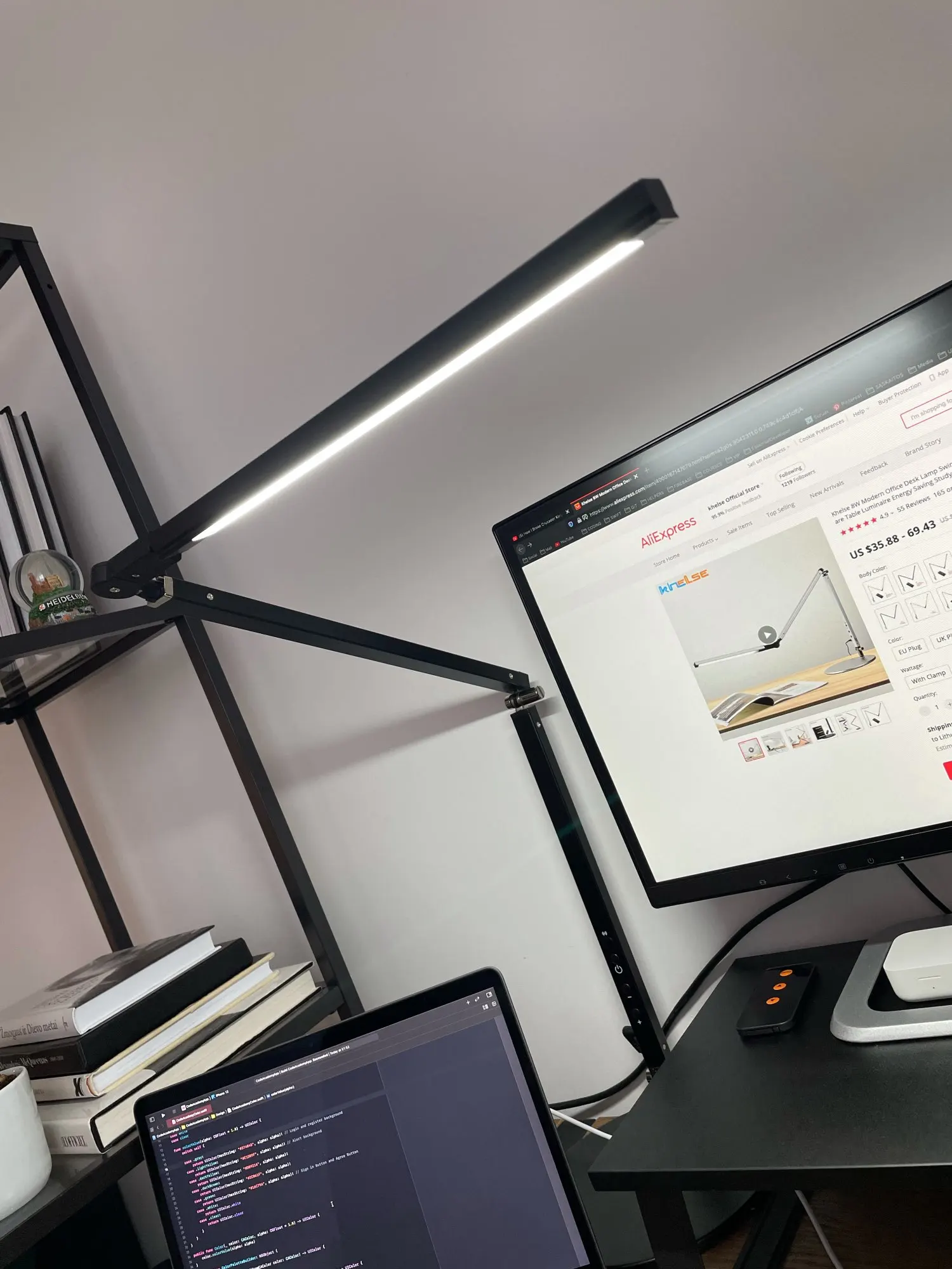 Хорошая лампа, минималистичный дизайн, и для меня плюс то что не мешает на столе, т.к. закреплена на столе за монитором. Единственный минус, если брать комплектацию с пультом, то каждый раз при включении лампа меняет температуру света, т.к. кнопка питания тут получается совмещена с выбором температуры, приходится по нескольку раз включать выключать, чтобы найти нужную температуру света.