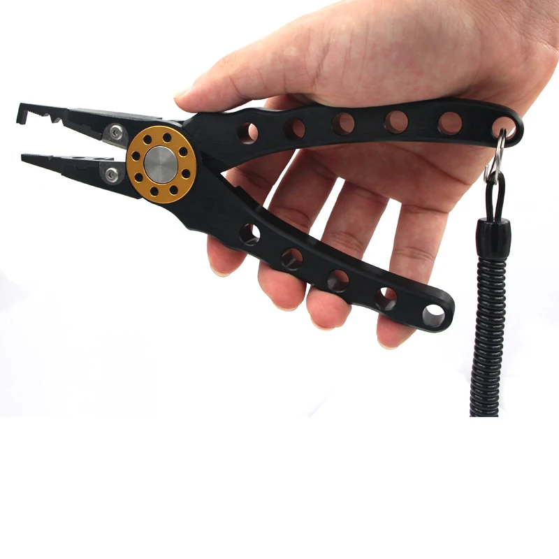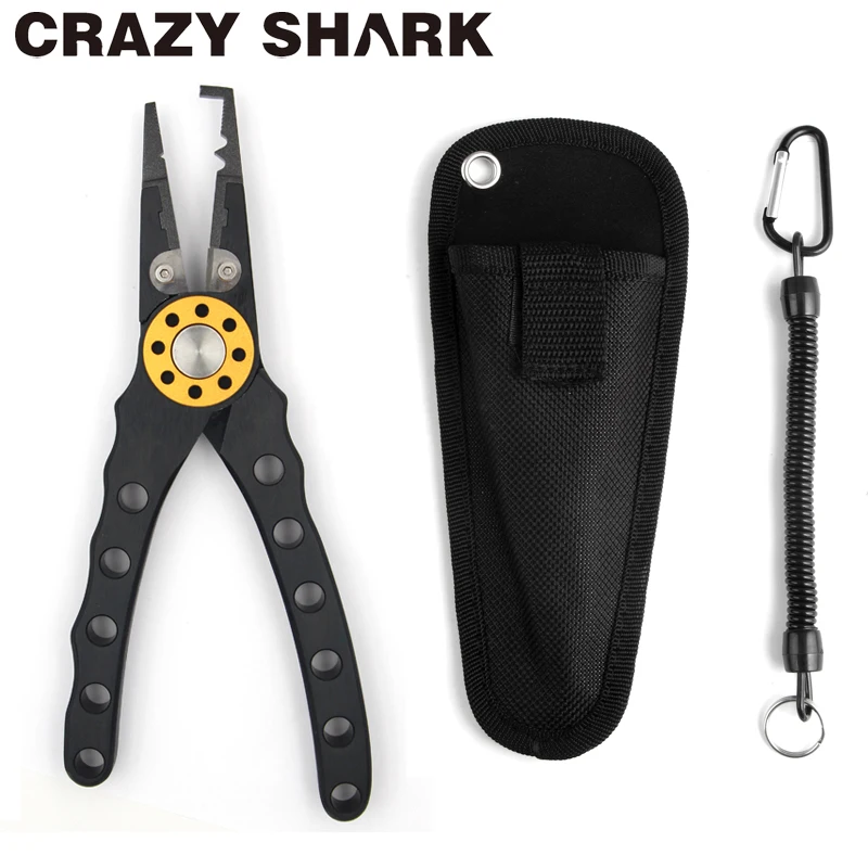 Сверхмощные алюминиевые рыболовные плоскогубцы Crazy Shark, инструмент для удаления крючков, разделенное кольцо, ножницы для рыбалки, леска, режущие инструменты 210 мм для соленой воды