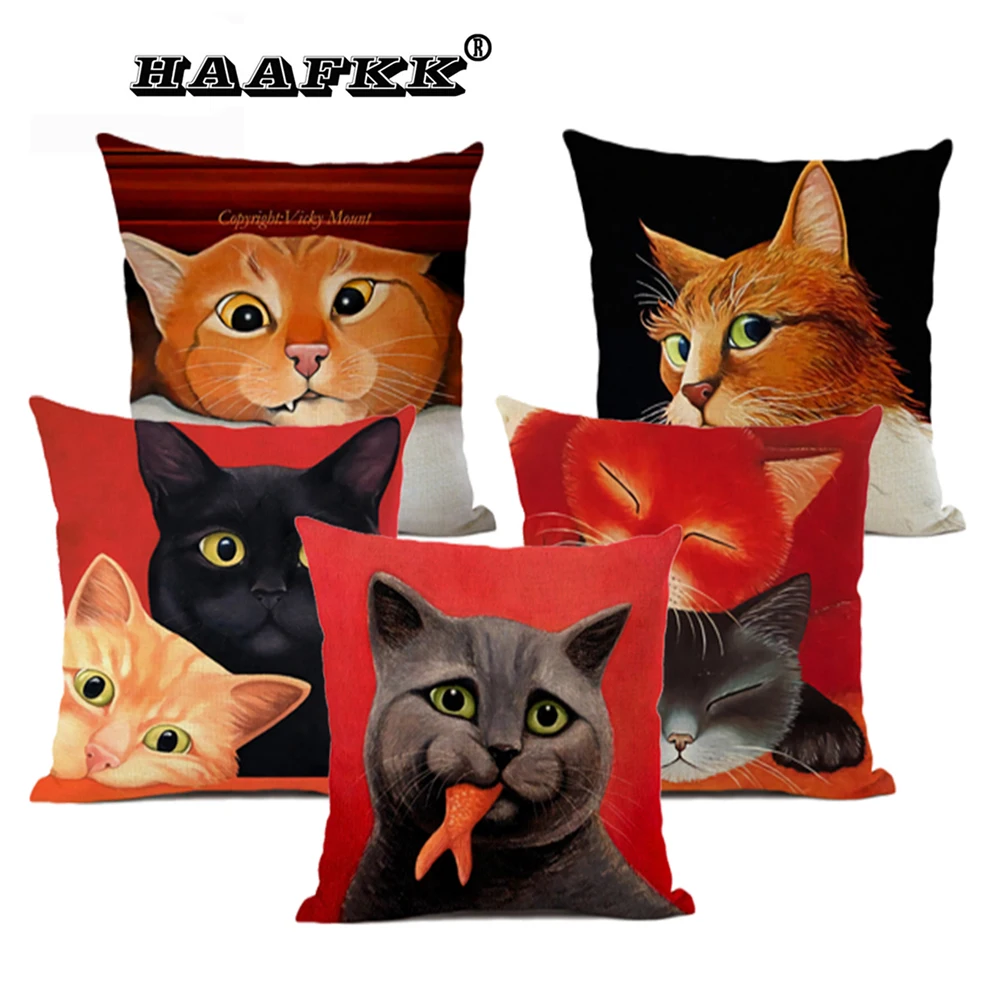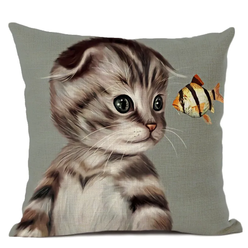Декоративная подушка в виде животного с собакой и кошкой, Высококачественная квадратная подушка из пеньки 45x45 см