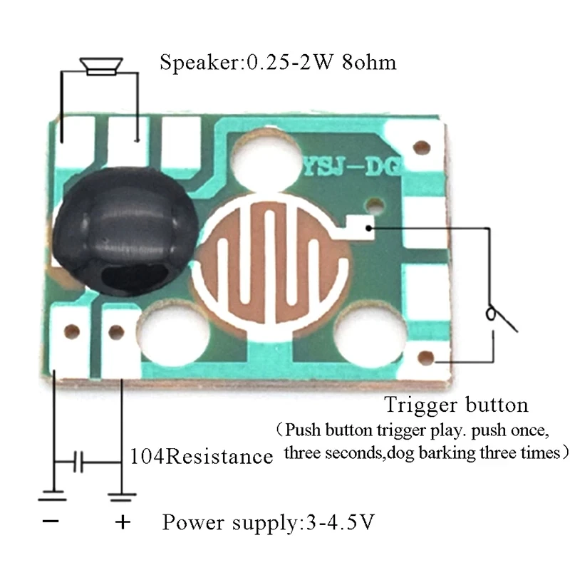 5 шт.лот DC 3-4,5 в собака лает музыкальный чип животное голосовой звуковой модуль кнопка запуска воспроизведения для DIY доска игрушки 22*16 мм