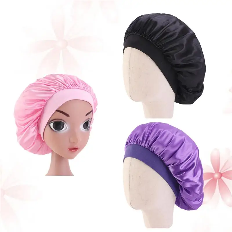 3 шт., детская атласная шапка для сна, эластичная широкая Круглая Шапка, чепчик для сна, головной убор для детей
