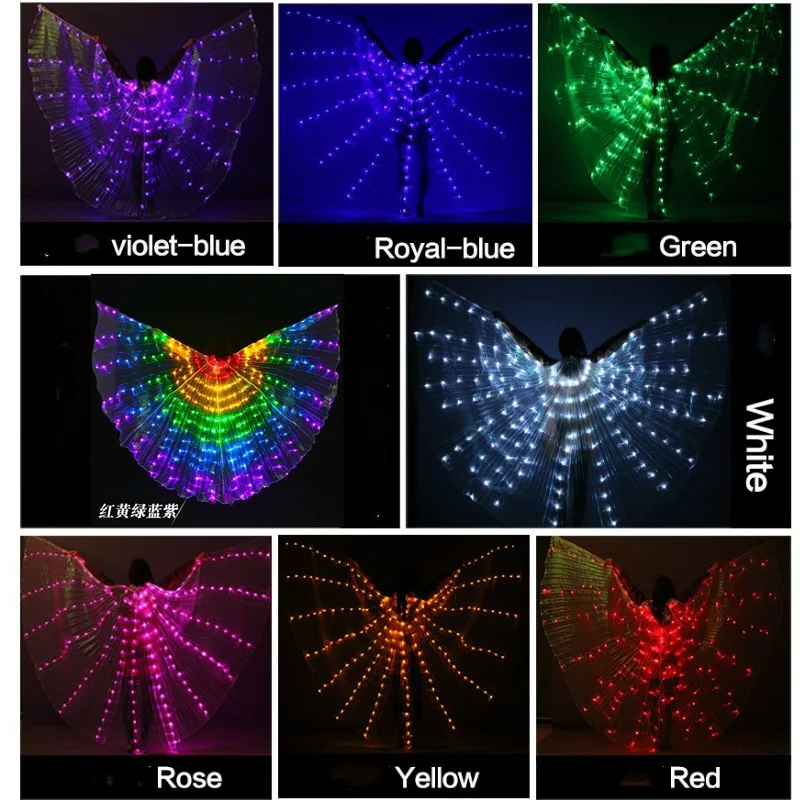 Крылья для танца живота со светодиодной подсветкой, с регулируемыми палочками