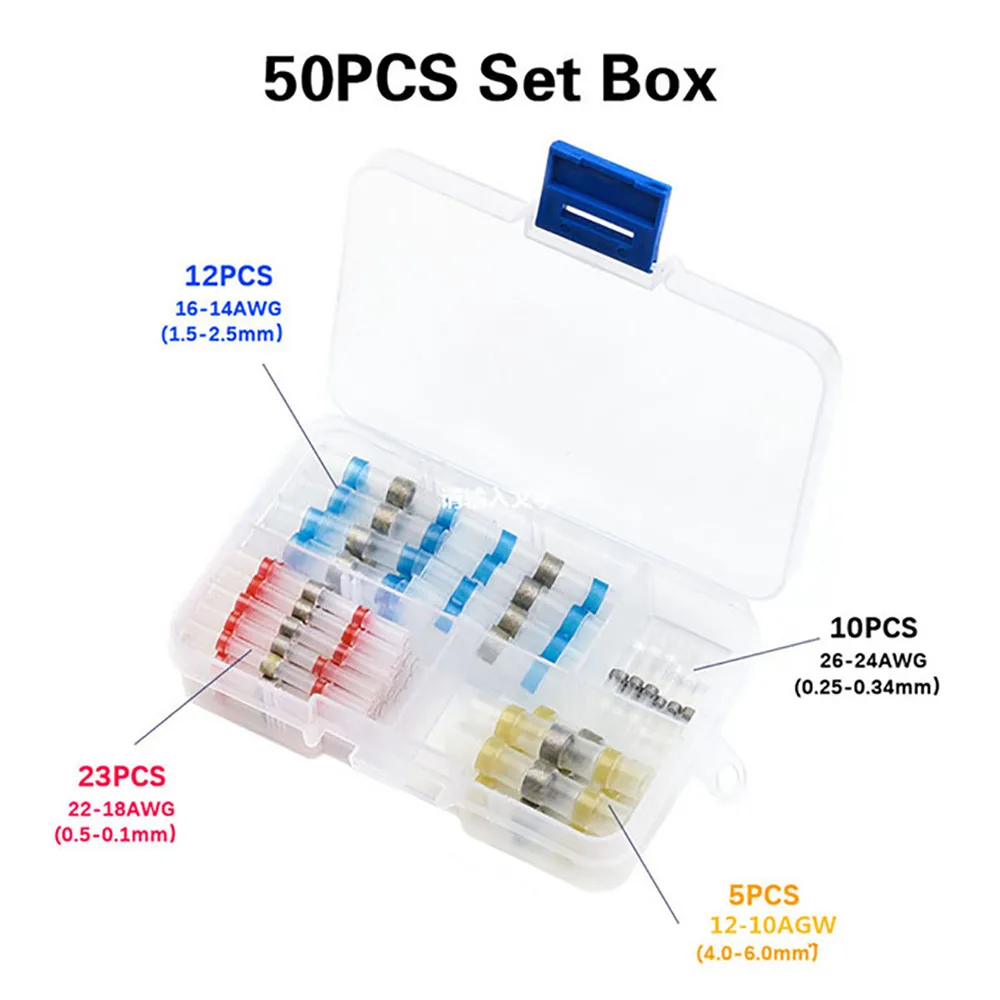 Соединитель электрического провода, сварная втулка, Изолированная втулка для пайки, трубка, термоусадочный сортировщик, Клемма, 50 шт.
