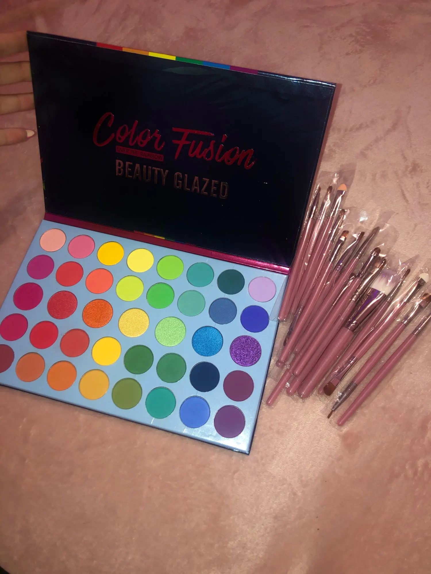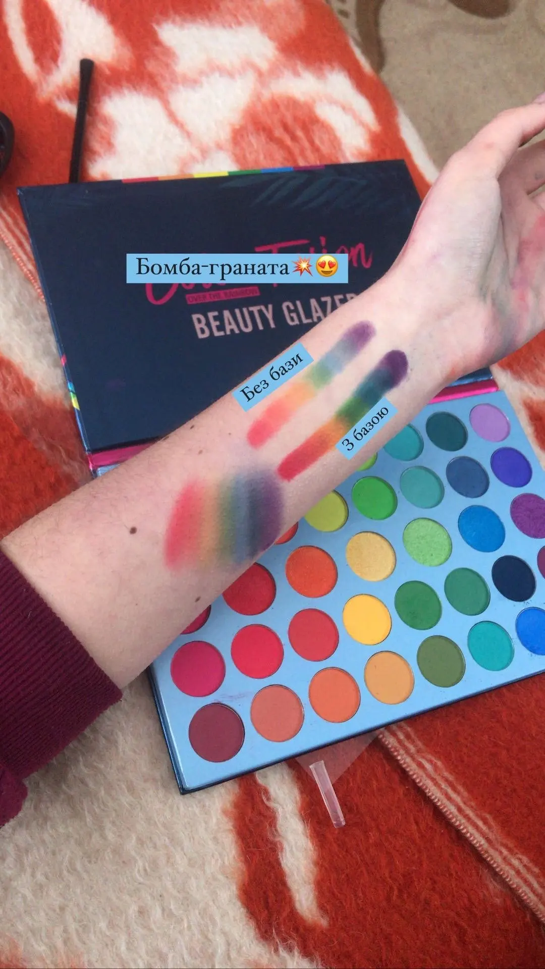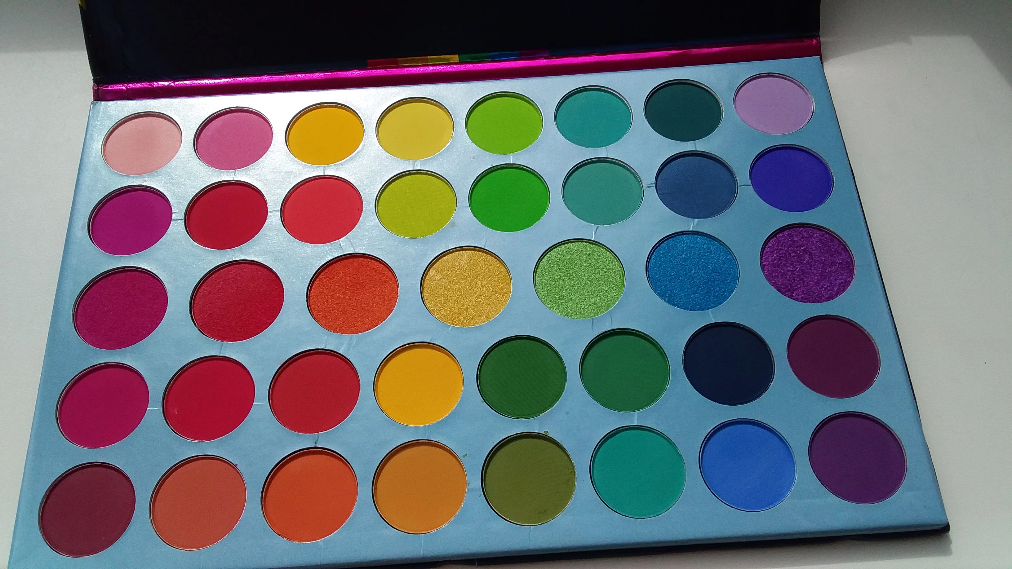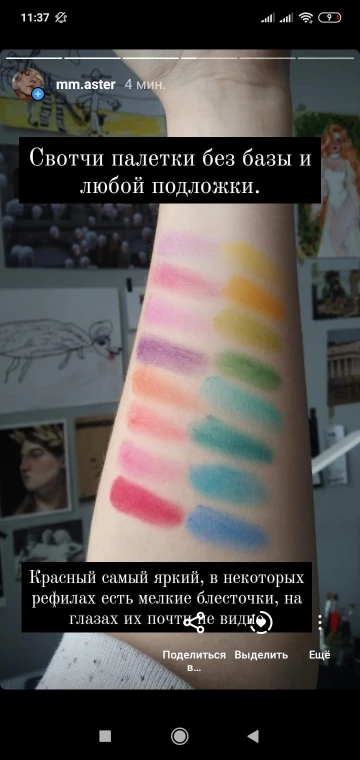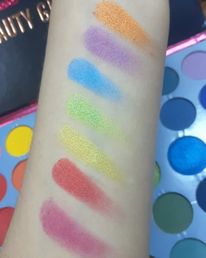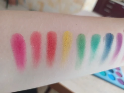 покупка оставила странное послевкусие. с одной строны - доставка без отслеживания (в Беларусь), долгая (3 месяца шла палетка, но это возможно все еще из-за эпидемии). пришла побитая. с другой стороны - качество у теней хорошее. осыпаются в пределе допустимого, пигментированные, легко тушуются. цвета яркие и приятные глазу. за свою цену хорошая покупка, но доставка оставляет желать лучшего. еще могу отметить, что продавец был отзывчивым. продлил защиту, деньги за разбитые цвета вернул. так что претензии не к нему, а к самой доставке.