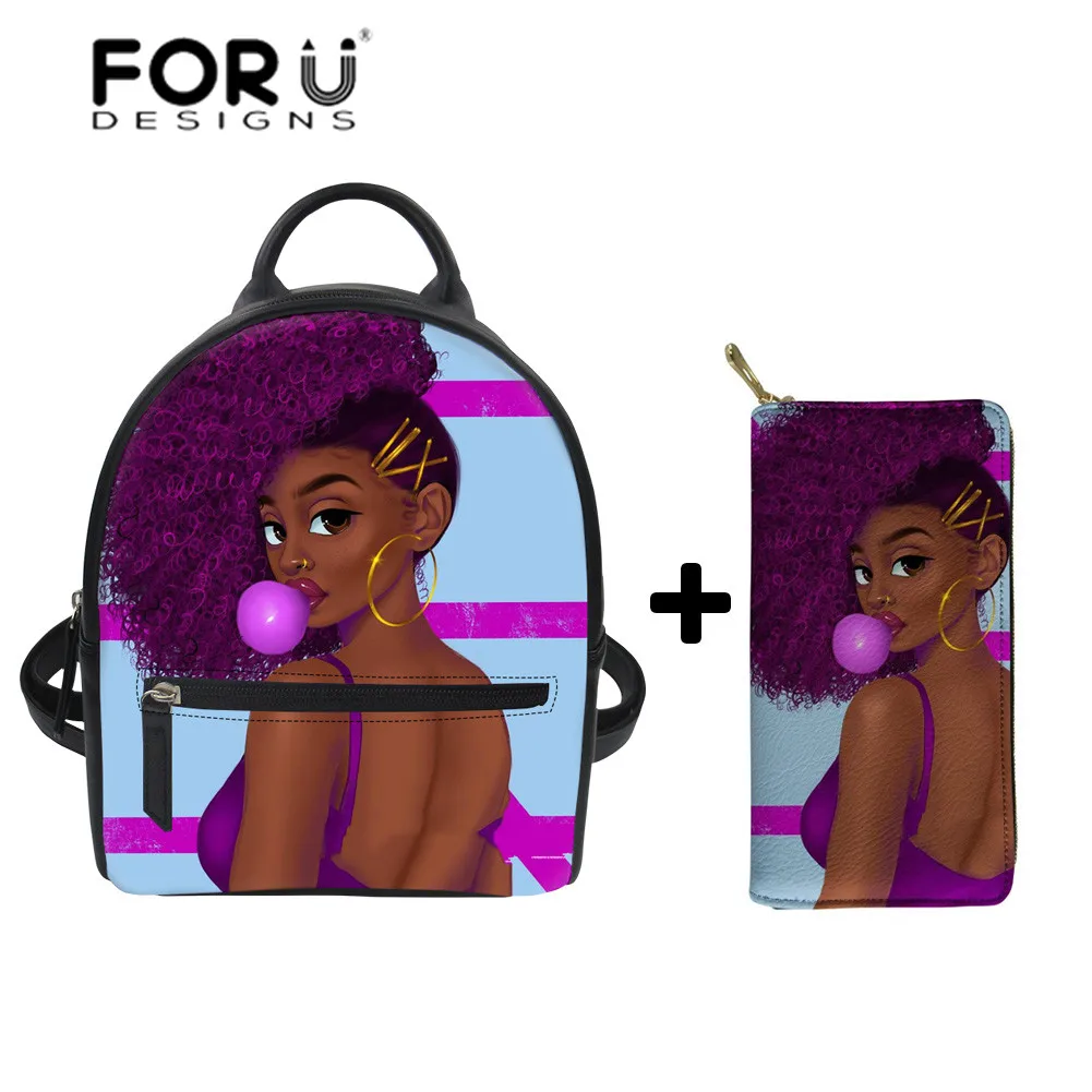 Рюкзаки FORUDESIGNS из искусственной кожи для женщин, черные художественные африканские девушки, Дамские Мини-рюкзаки для книг для женщин, пляжная мини-сумка на ремне