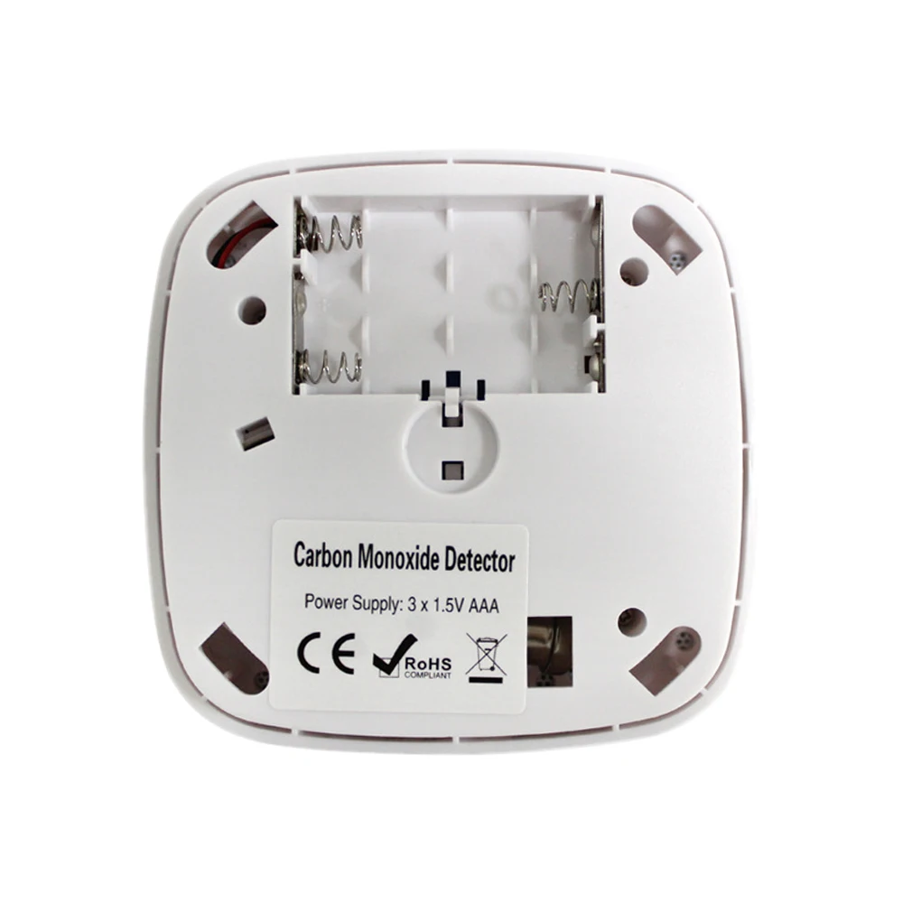 Независимый детектор окиси углерода Детектор 3-разрядный ЖК-дисплей Звуковая и световая сигнализация Длительное время работы в режиме ожидания. Питание от аккумулятора, без проводов Высокочувствительный сенсор Сигнал предупреждения о низком заряде батареи