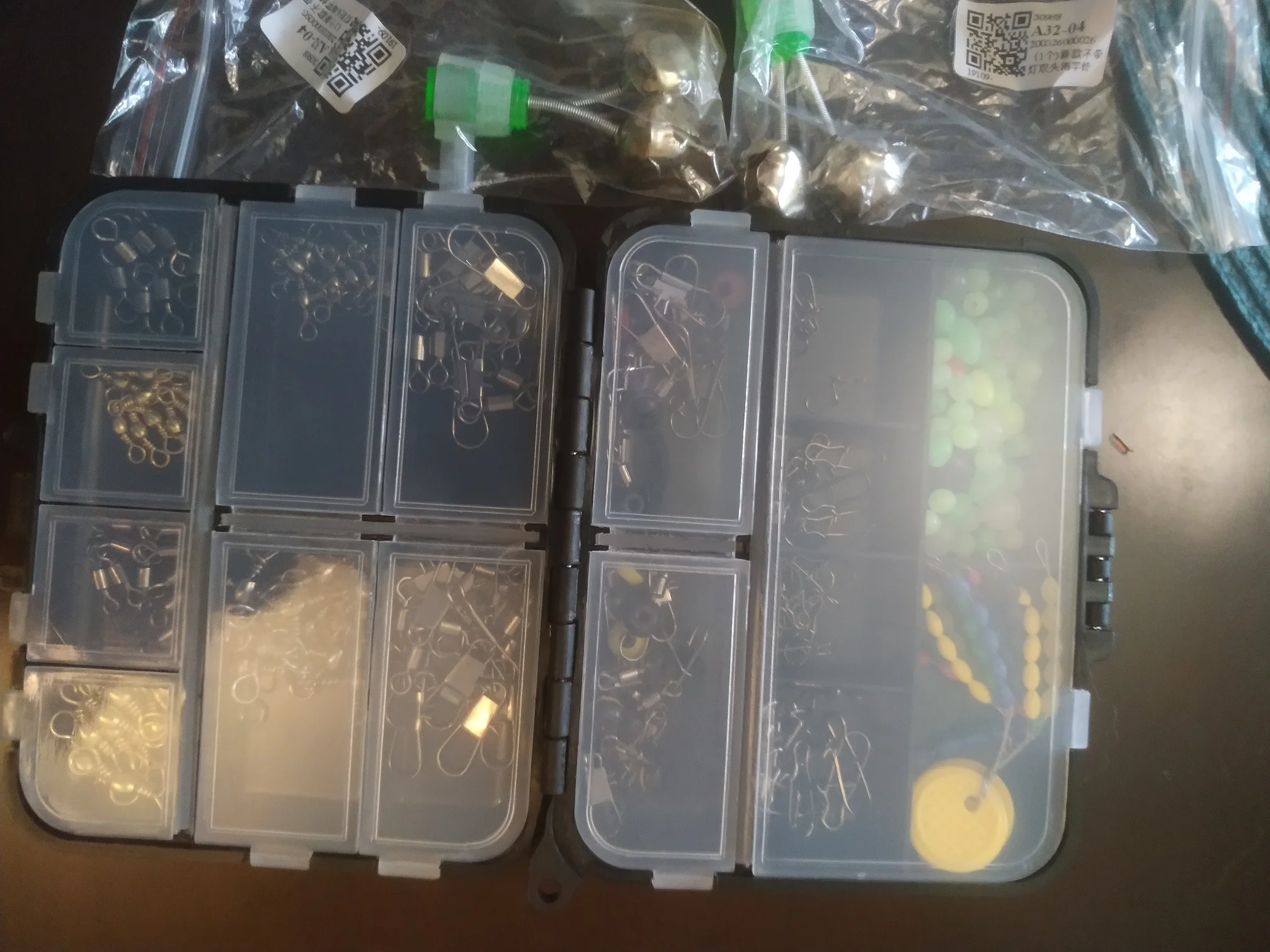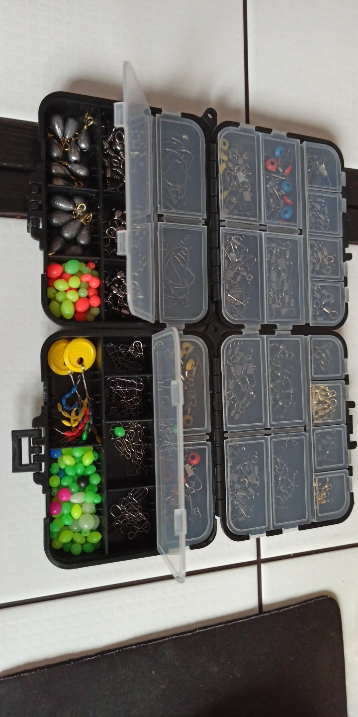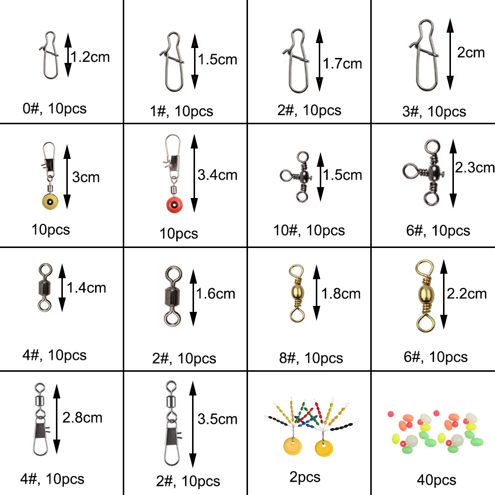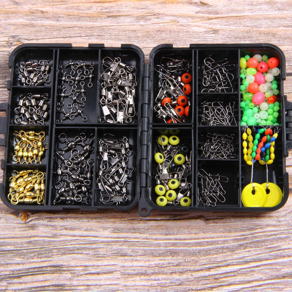 182 шт., рыболовные Вертлюги, защелкивающийся соединитель, стопор для поплавка бусин в комплекте с черным ящиком для рыболовных снастей