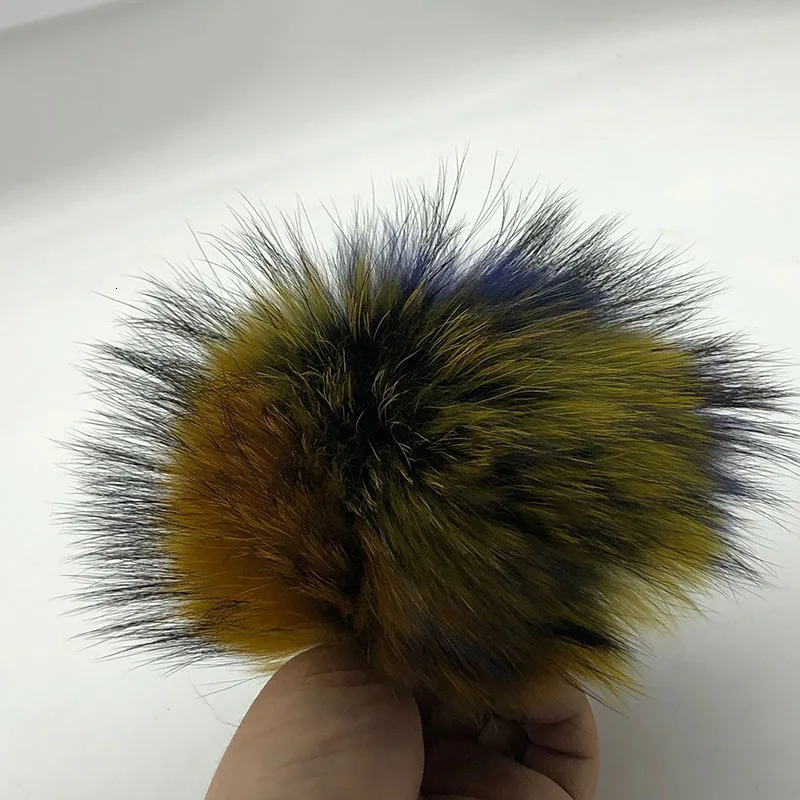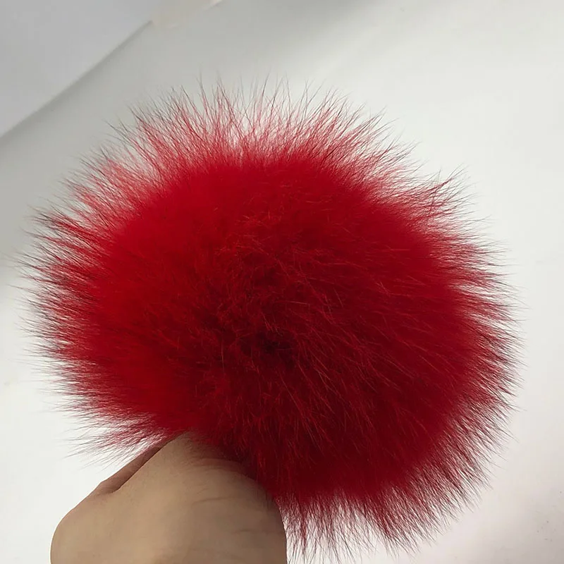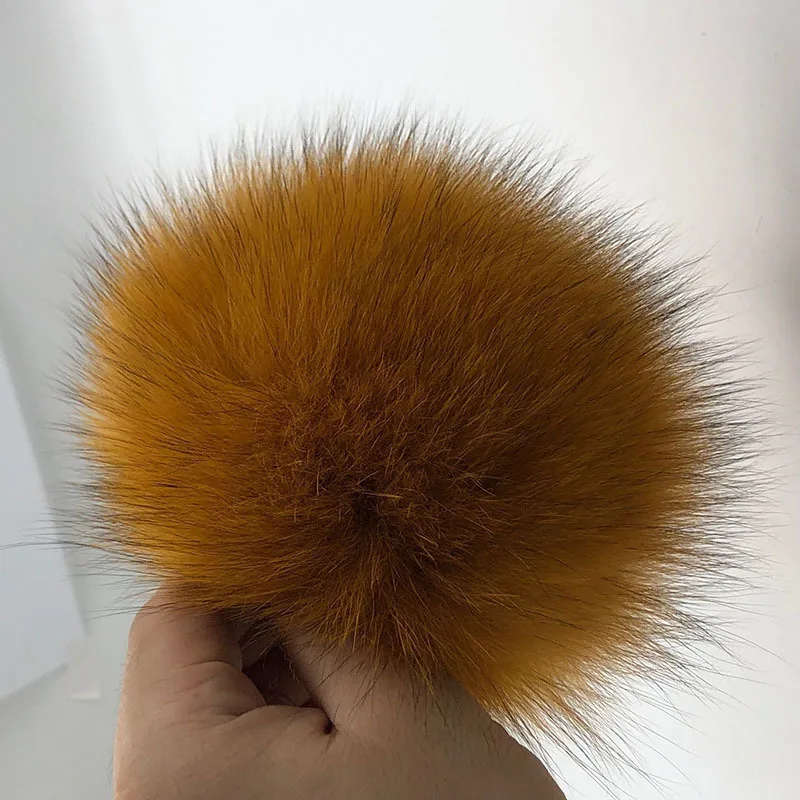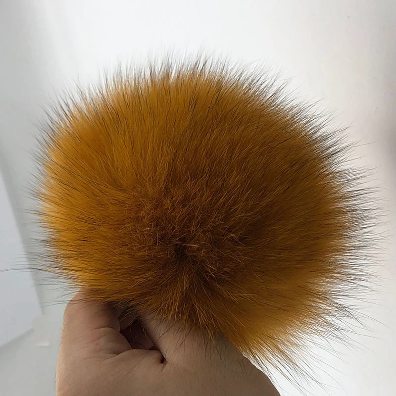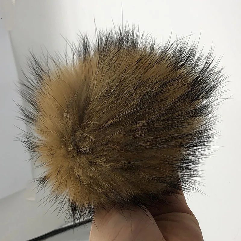 Шапка с помпоном из натурального меха енота, 15 см