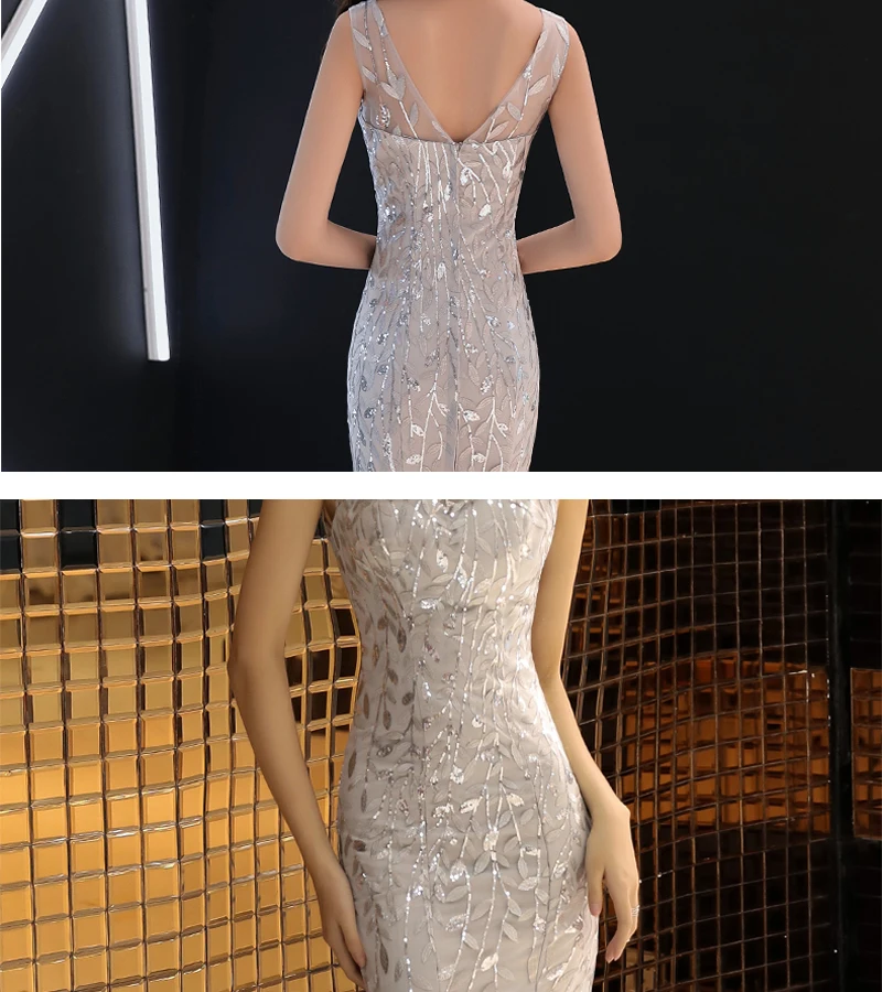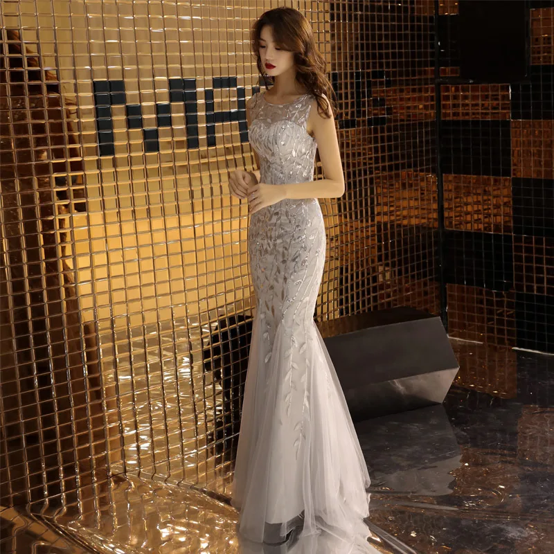 Женские вечерние платья в пол, с круглым вырезом, с блестками