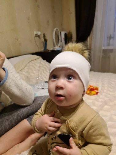 Идеально, действительно восхитительно Помпон отстегивается для стирки Гарантированный эффект Хорошее качество Я рекомендую этот товар и этот продавец без колебаний Растягивающийся материал Ребенок в 6 месяцев идеально подходит ему