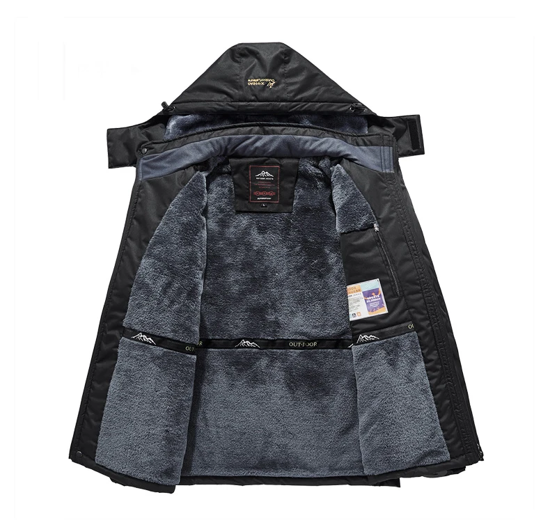 Зимняя куртка мужская Толстая ветрозащитная Водонепроницаемая флисовая куртка мужская Военная верхняя одежда парка плюс бархат Размер 6XL, 7XL, 8XL пальто