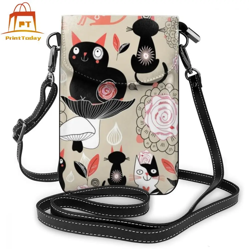 Сумка на плечо с кошкой, женская кожаная сумка с рисунком кота, трендовые женские сумки для покупок, маленький кошелек высокого качества