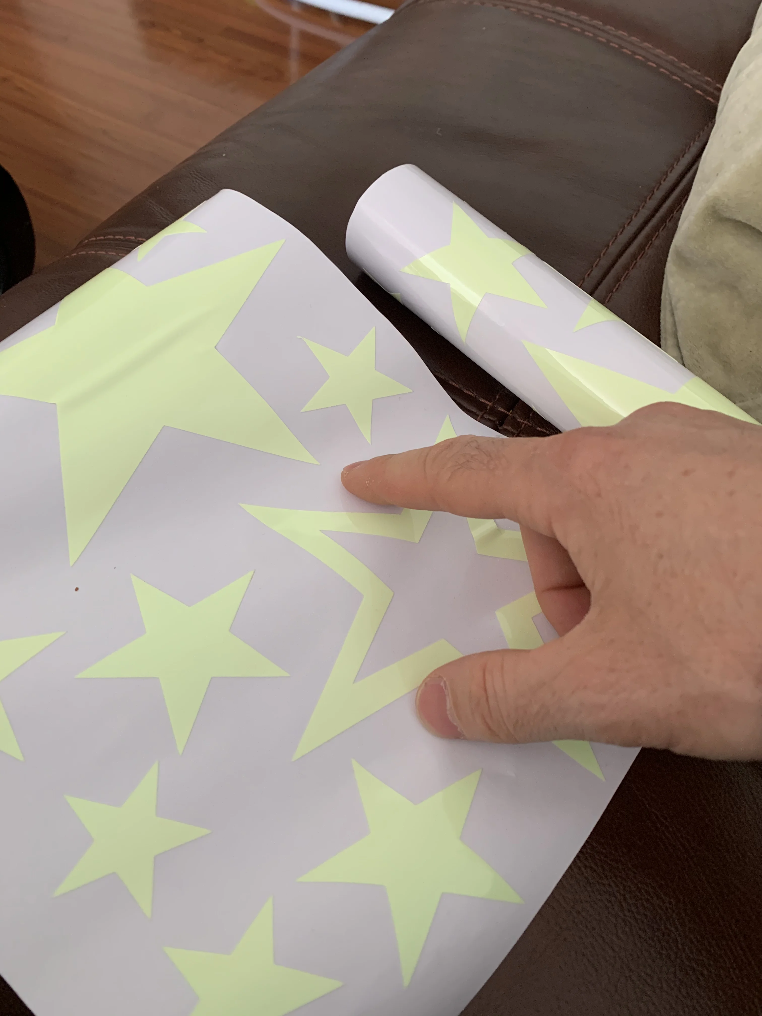 очень яркие наклейки, хорошо клеятся,но можно переклеить без ущерба для обоев.В детской не нужен ночник после их применения.