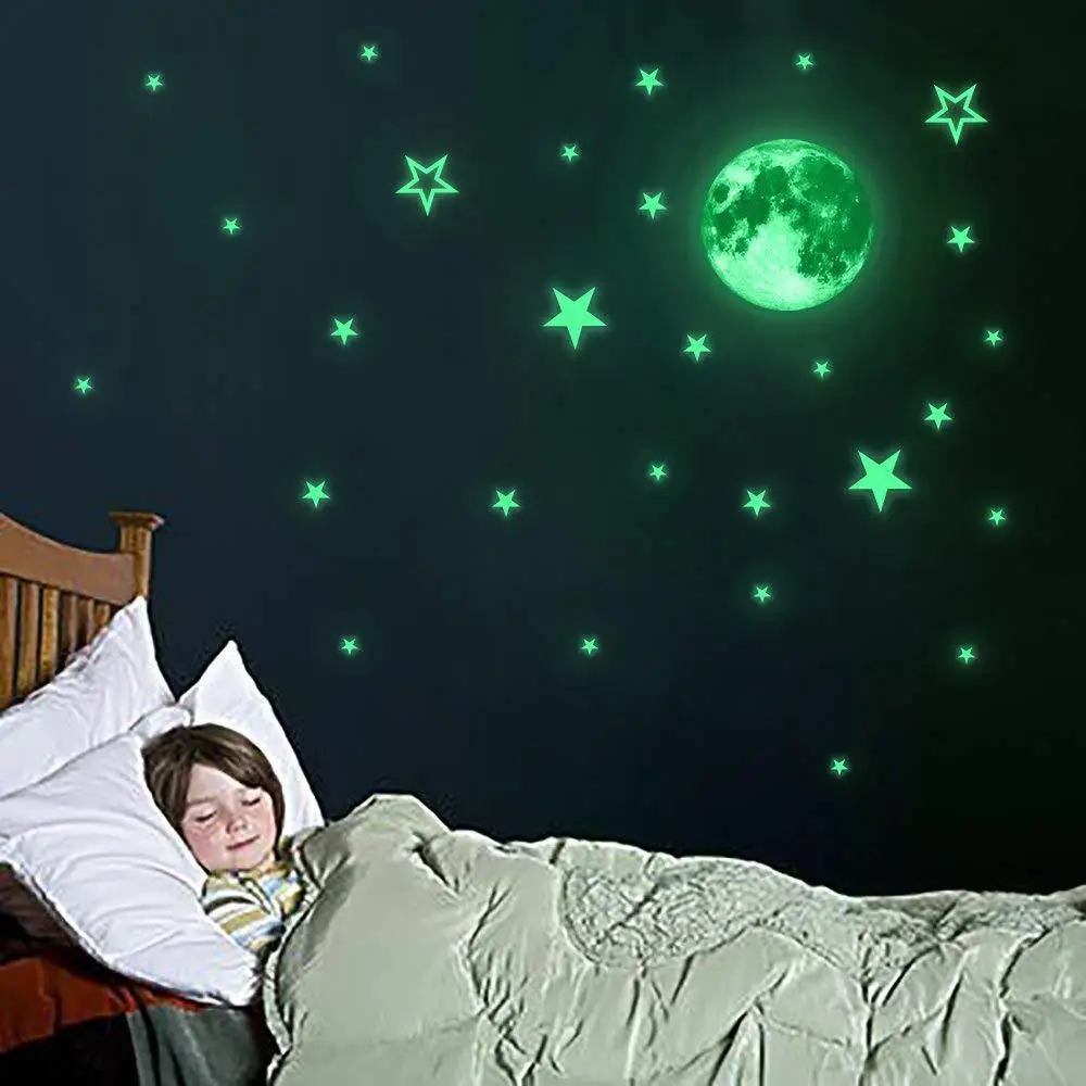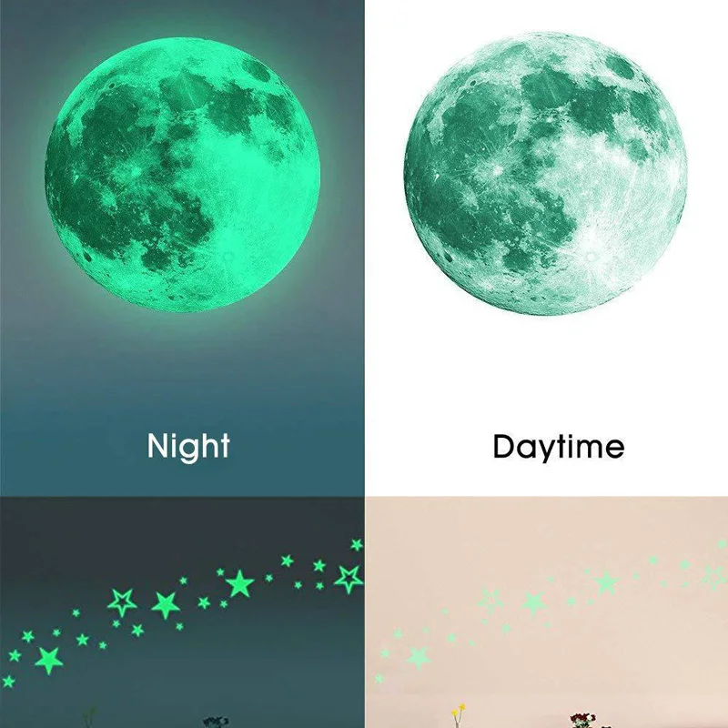 Светящаяся луна звезды комбинация 3D Наклейка на стену спальня гостиная украшение дома наклейки для детской комнаты светится в темноте наклейка s