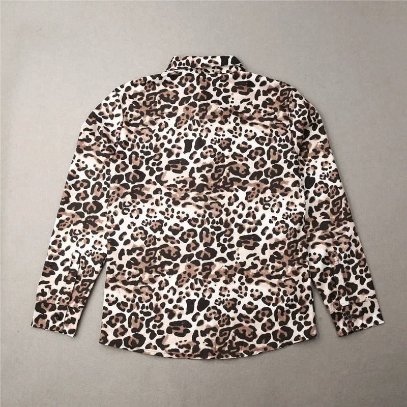 Модная осенне-зимняя мужская рубашка повседневная леопардовая Хлопок Лен с рисунком рубашка свободные топы Рубашка с длинными рукавами мужская повседневная рубашка