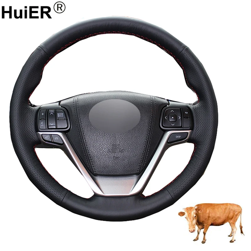 Верхний слой из коровьей кожи чехол на рульДля Toyota Highlander 2014 2015 2016 2017 2018 2019 Sienna 2015-2019.