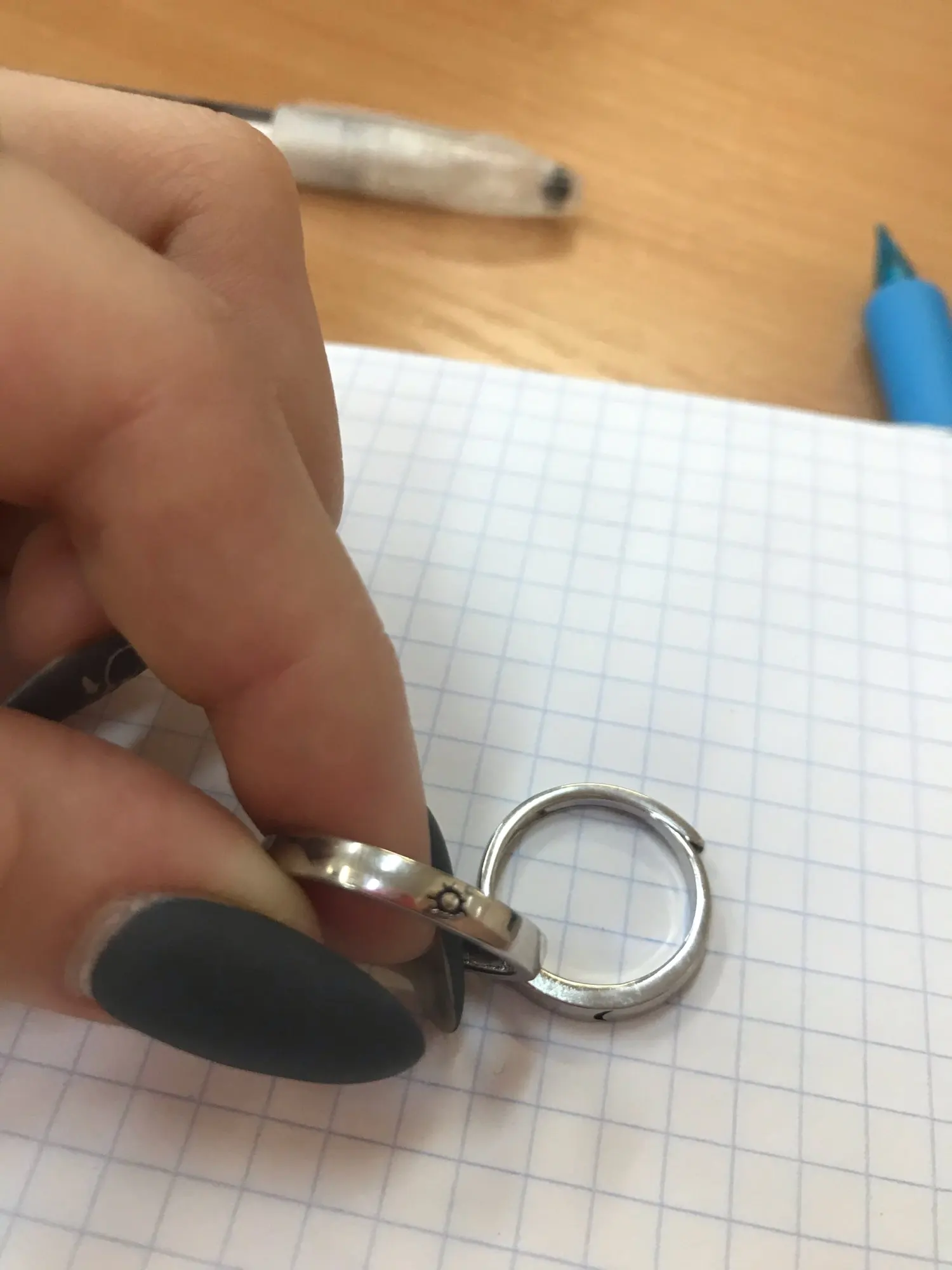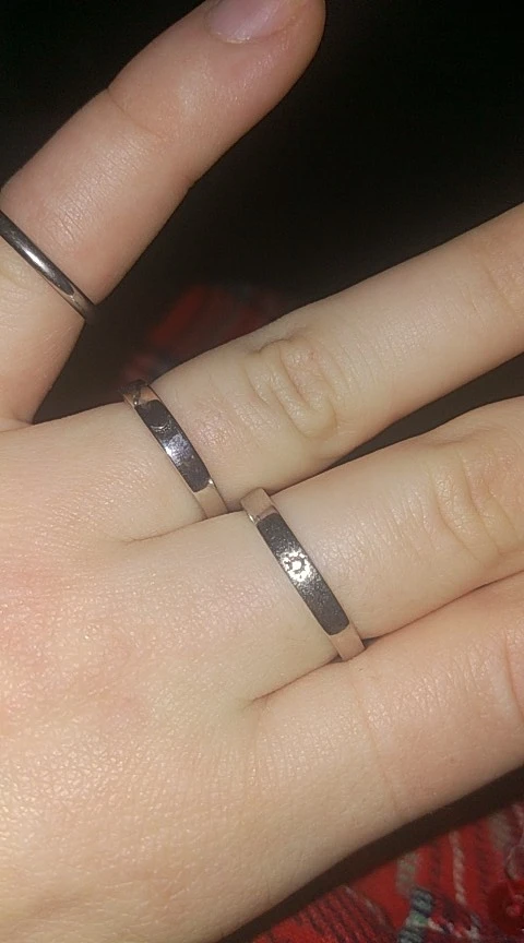 колечки супер, я счастлива никаких огрехов, рисунок чёткий, надписи не кривые, короче за свои деньги 10/10 надеюсь, они не скоро заржавеют