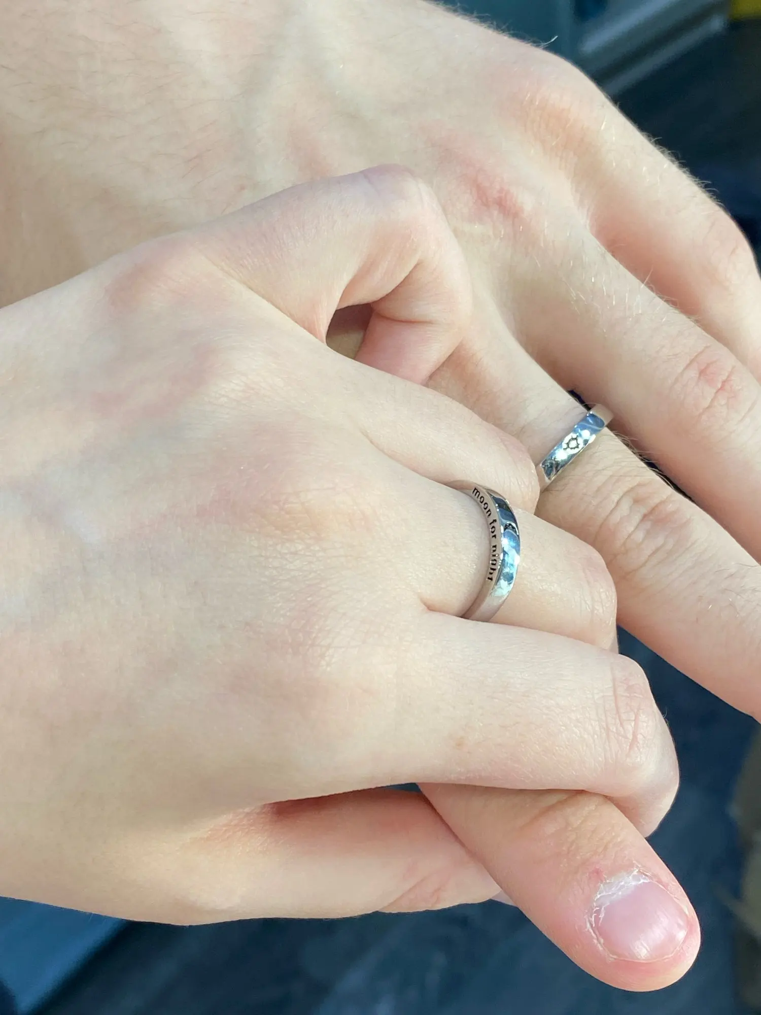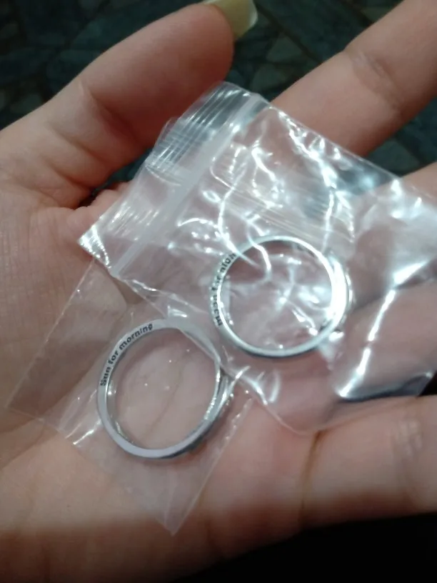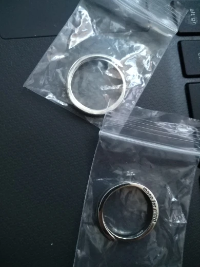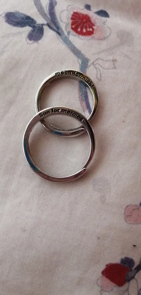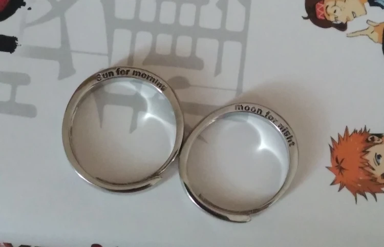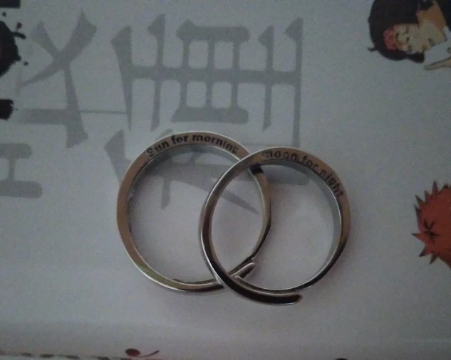 Заказ был выполнен где-то 15-16 февраля. В ХМАО прибыло 9 марта вместе с двумя другими посылками. Колечки без каких-либо дефектов, без царапин и т.д... Размер можно отрегулировать под себя. Также на кольцах написано "sun for morning", и "moon for night". В общем, клиент заказом удовлетворён (*´∇`)ノ