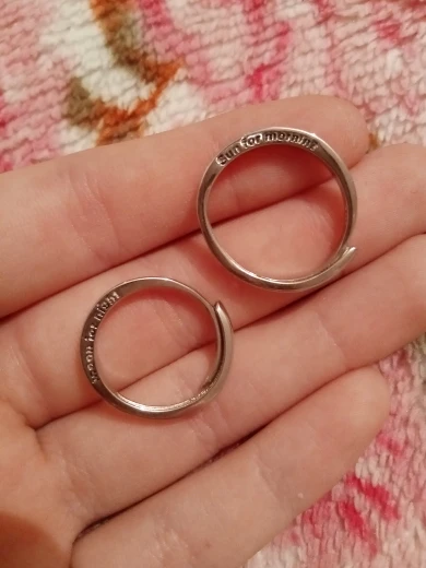 Кольца просто лапули❤ пришли где-то за полтора-два месяца. выглядят достаточно дорого, внутри есть какой-то штампик "S925". предполагаю, что это может быть серебро, но за такую цену врядли. огромный плюс в том, что если размер не подходит, колечко можно сдвинуть или раздвинуть. свое я уже помучила, чтобы было как раз на безымянный пальчик, т.к любые кольца на меня большие(. второе буду дарить парню на 14 февраля❤ огромное спасибо продавцу за качественны товар, по такой низкой цене!