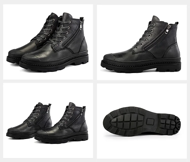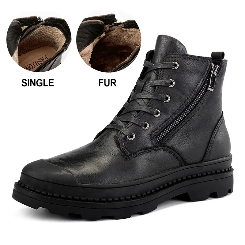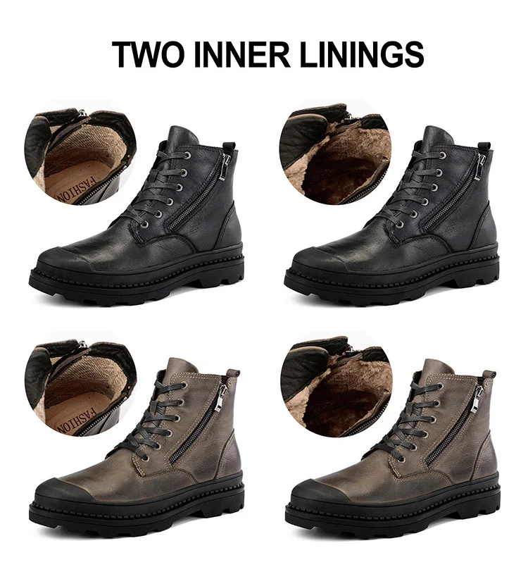 Дышащие мужские ботинки из натуральной кожи на меху, зимние ботинки...