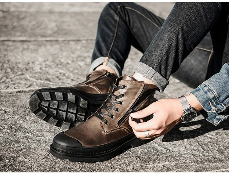Рабочие ботинки; Мужские ботинки в байкерском стиле; дышащие зимние ботинки из натуральной кожи; Ботинки martin; Мужские Зимние ботильоны; Винтажные ботинки