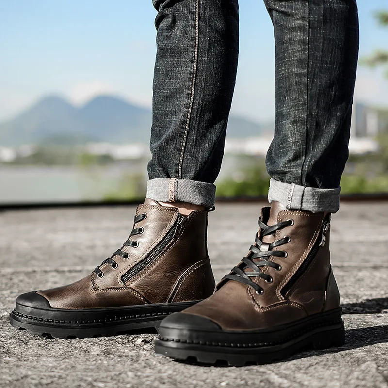 Мужские кожаные ботинки с высоким берцем, повседневная обувь из кор...