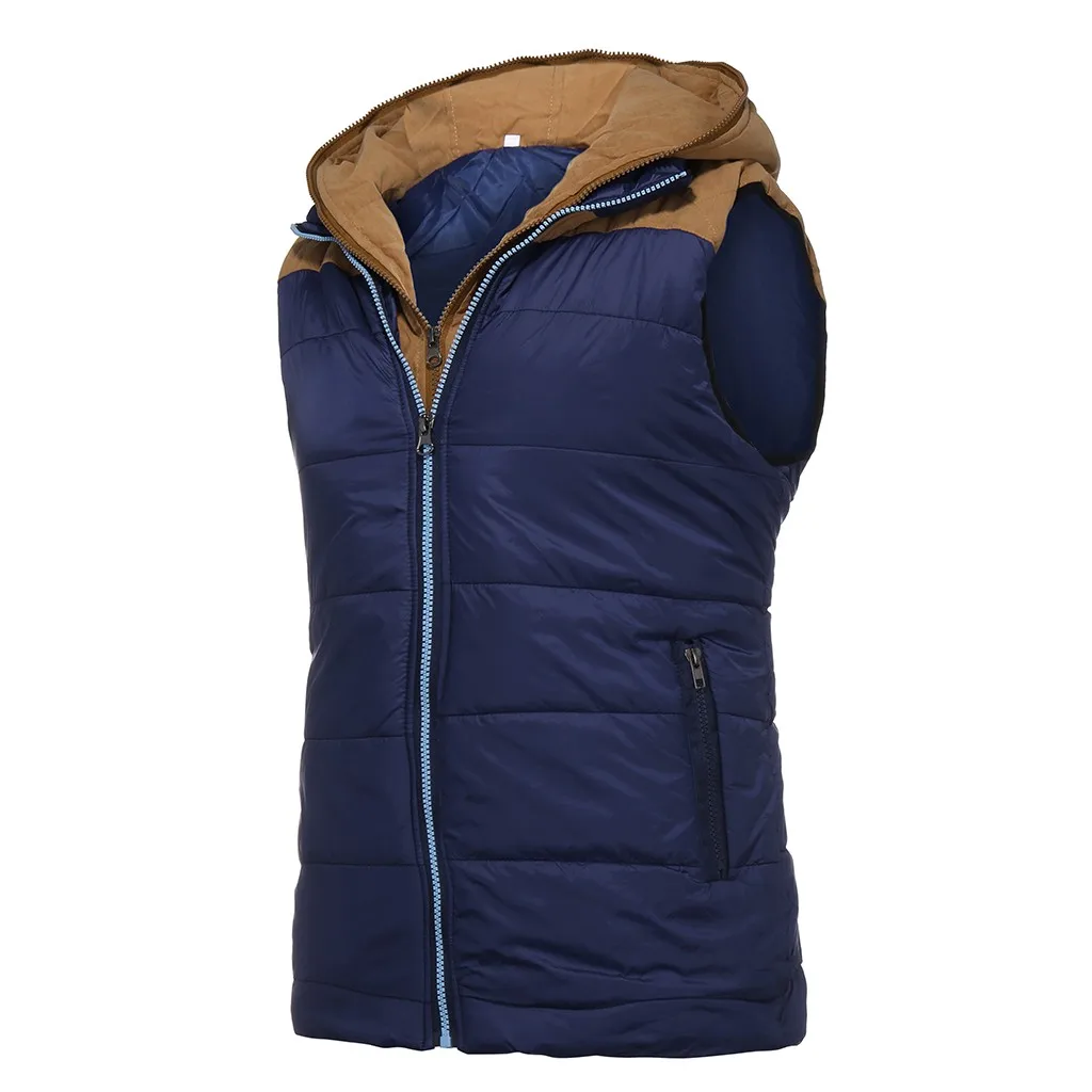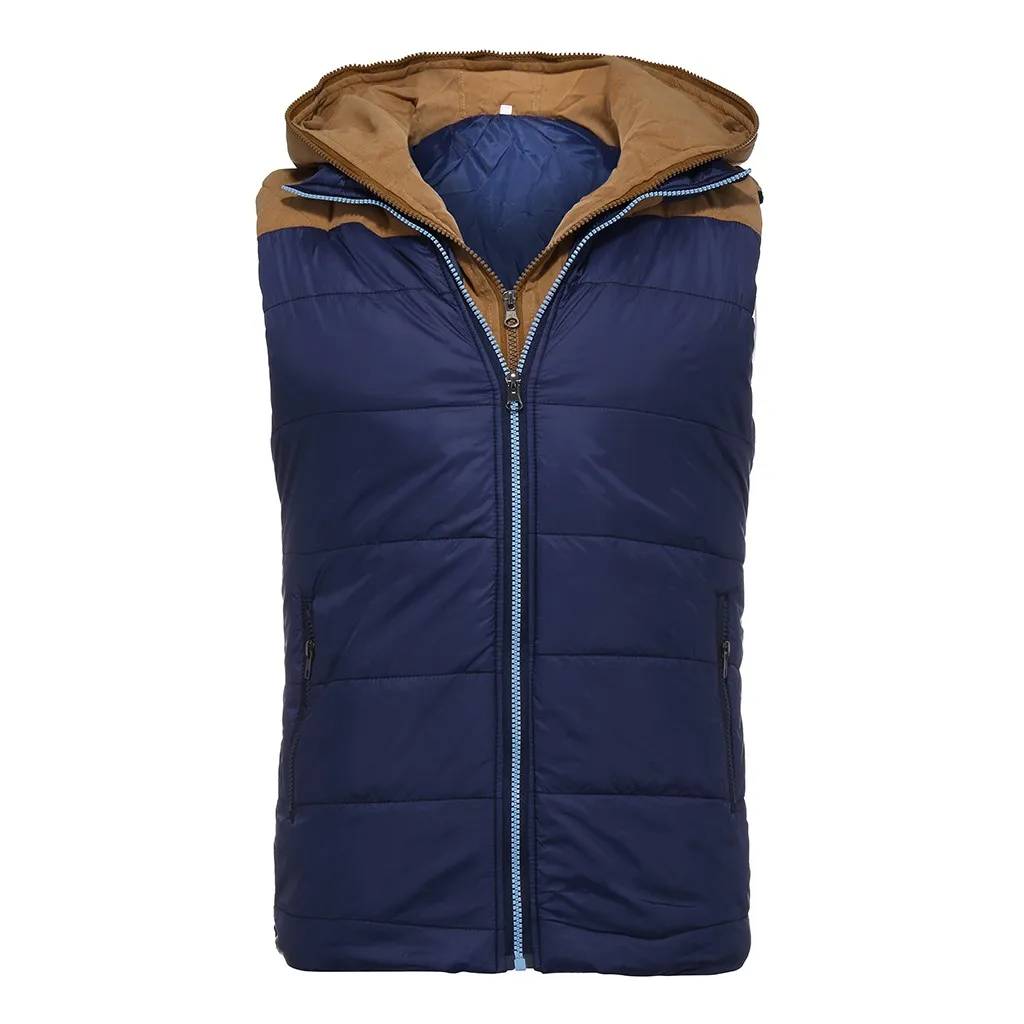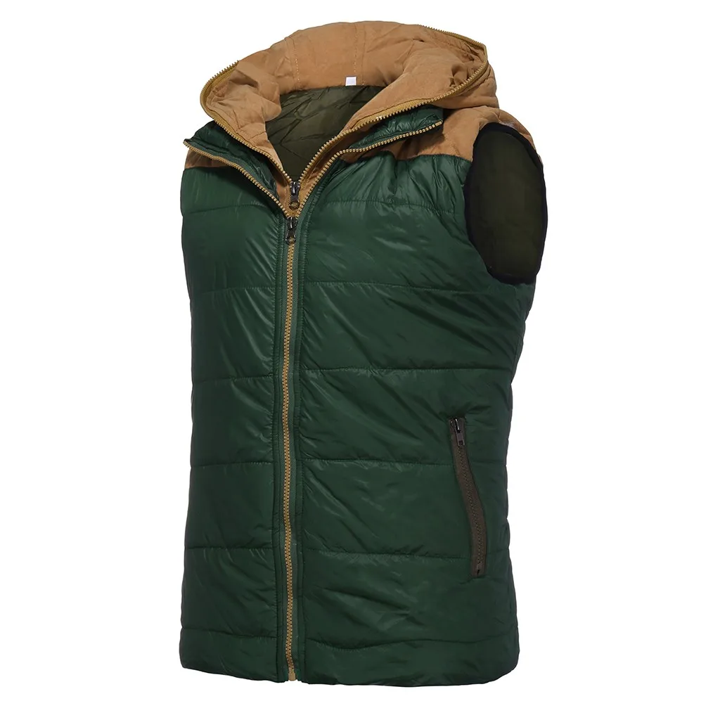 Брендовая зимняя мужская теплая туника, жилет без рукавов, мужская хлопковая куртка с капюшоном, мужской жилет на молнии для осени, мужской жилет # G8