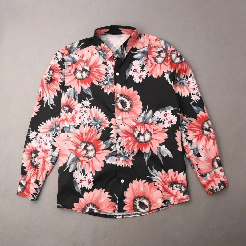 Новинка 2019, осенние мужские рубашки размера плюс 3XL с длинным рукавом и цветочным принтом, хлопковые повседневные рубашки, модная мужская одежда, топы