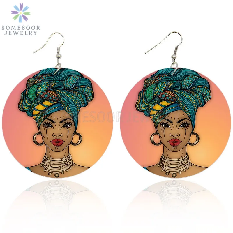 SOMESOOR меланин поппин королева вьющиеся деревянные висячие серьги...