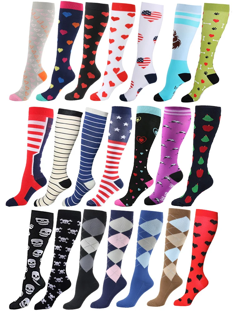 HYSAIXIA компрессионные женские и мужские чулки популярная любовь узор полоски решетки звезда Компрессионные носки для бега спортивные эластичные давление