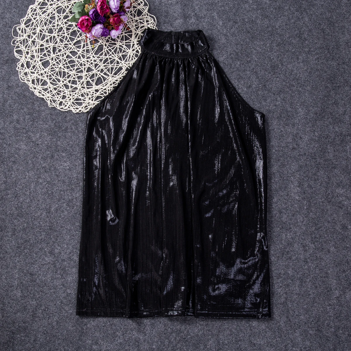 Женская блузка с высоким воротом, Золотая блузка без рукавов, Повсе...