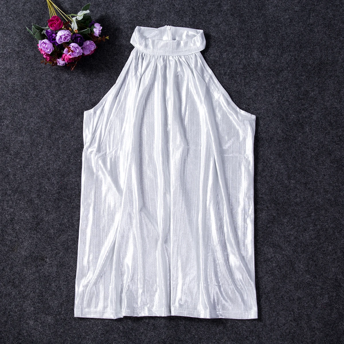 Майка женская золотистаяСеребристая с высоким воротником, модный то...