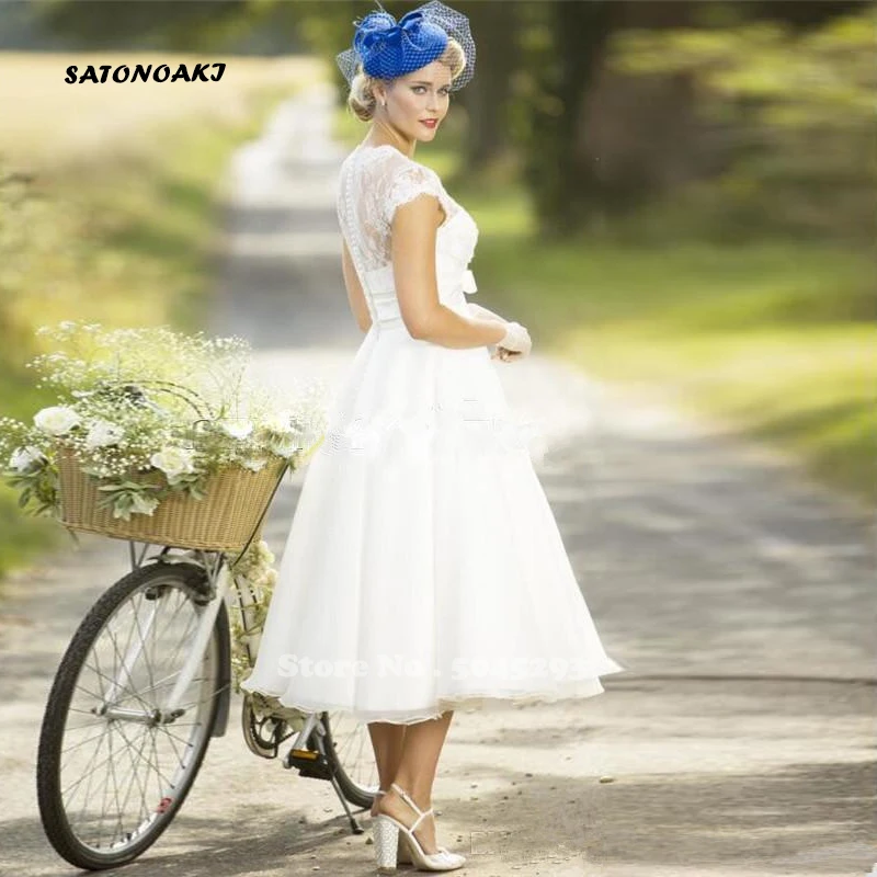Женское свадебное платье с юбкой-годе, белое платье с круглым вырез...