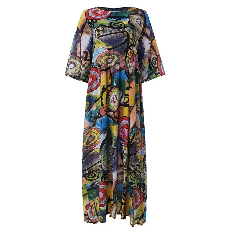 Платье ZANZEA женское длинное с принтом, повседневный кафтан, туник...