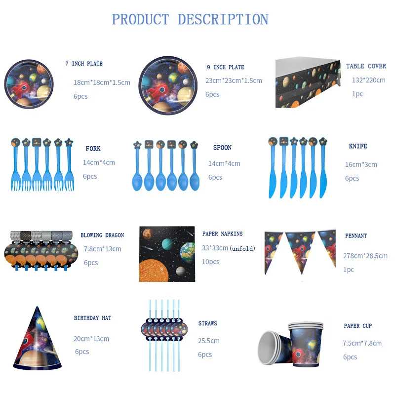 Вечерние салфетки для космонавта, тарелки для космонавта, столовые приборы, вечерние украшения для космонавта на день рождения