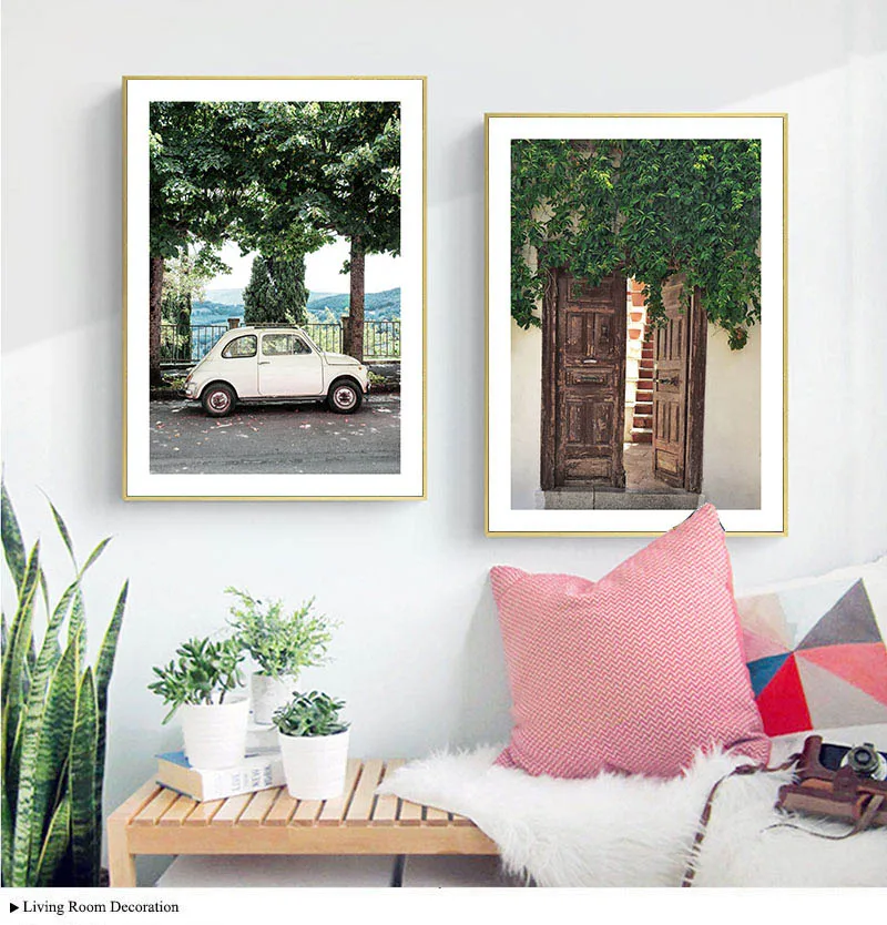 Старая архитектура двери окна Пейзаж Плакат цветочный принт холст н...