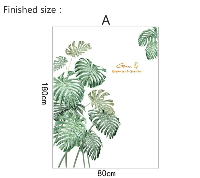 Съемные стикеры на стену с большими зелеными листьями, 80*180 см, для спальни, креативное украшение для гостиной, европейские обои