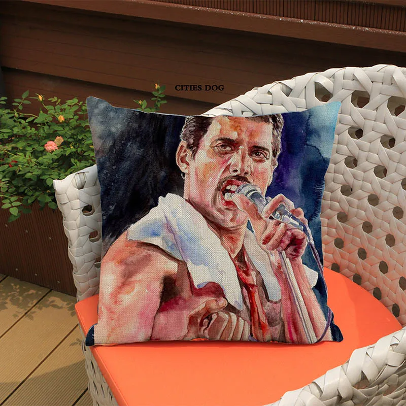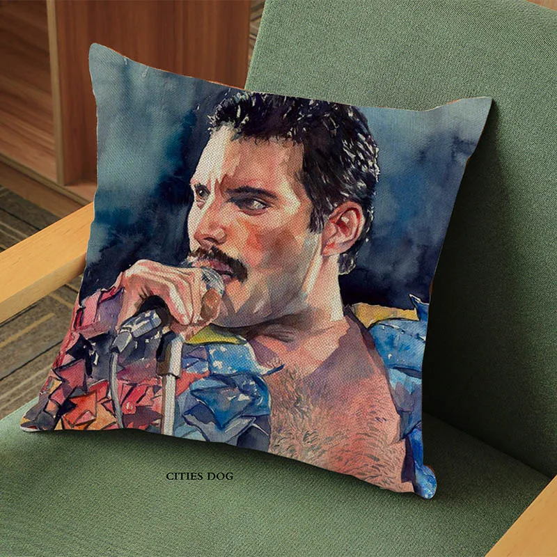 Акварельная масляная живопись в стиле знаменитой королевы фронтального человека Фредди Меркурий портрет наволочка домашняя искусственная Обложка
